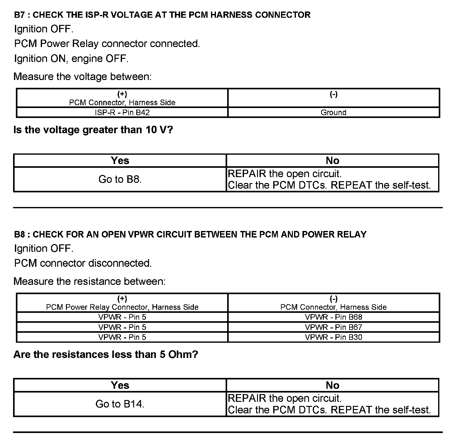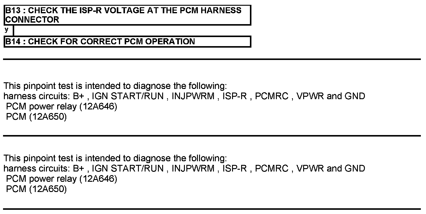 Home >> Ford >> 2012 >> E 150 V8-4.6L >> Repair and Diagnosis >> Powertrain Management >> Computers and Control Systems >> Testing and Inspection >> Pinpoint Tests >> Test B: Powertrain Control Module (PCM) Power Relay