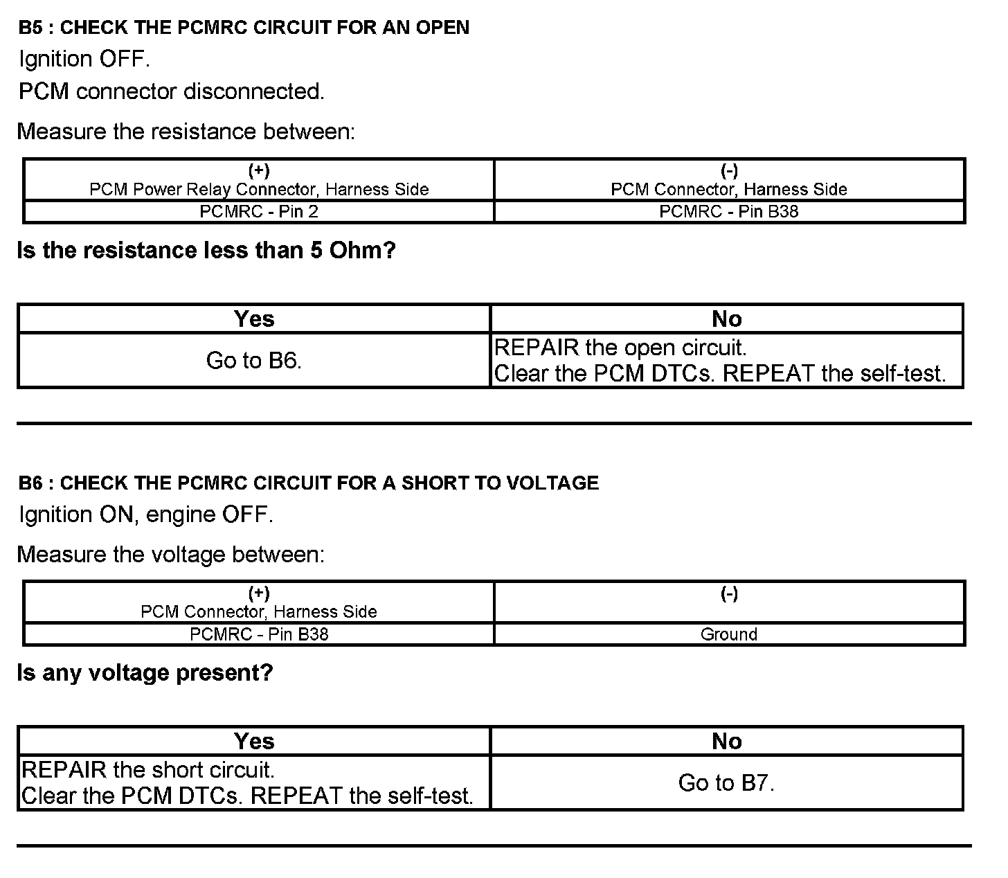 Test B: Powertrain Control Module (PCM) Power Relay