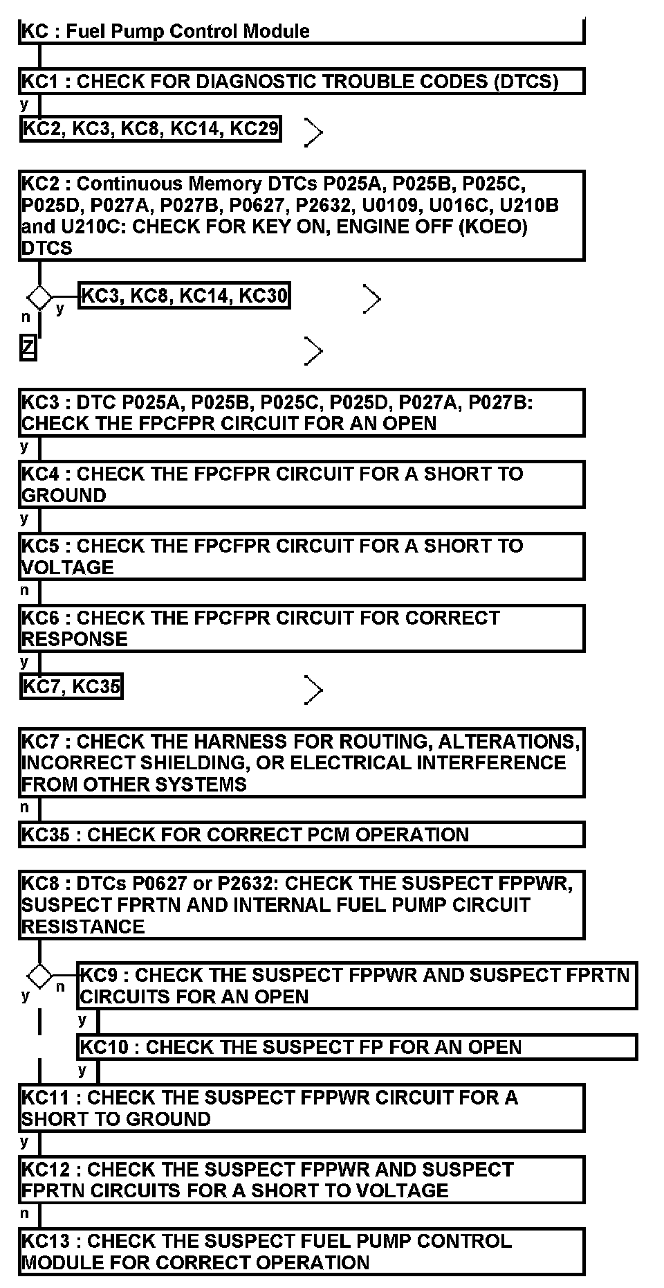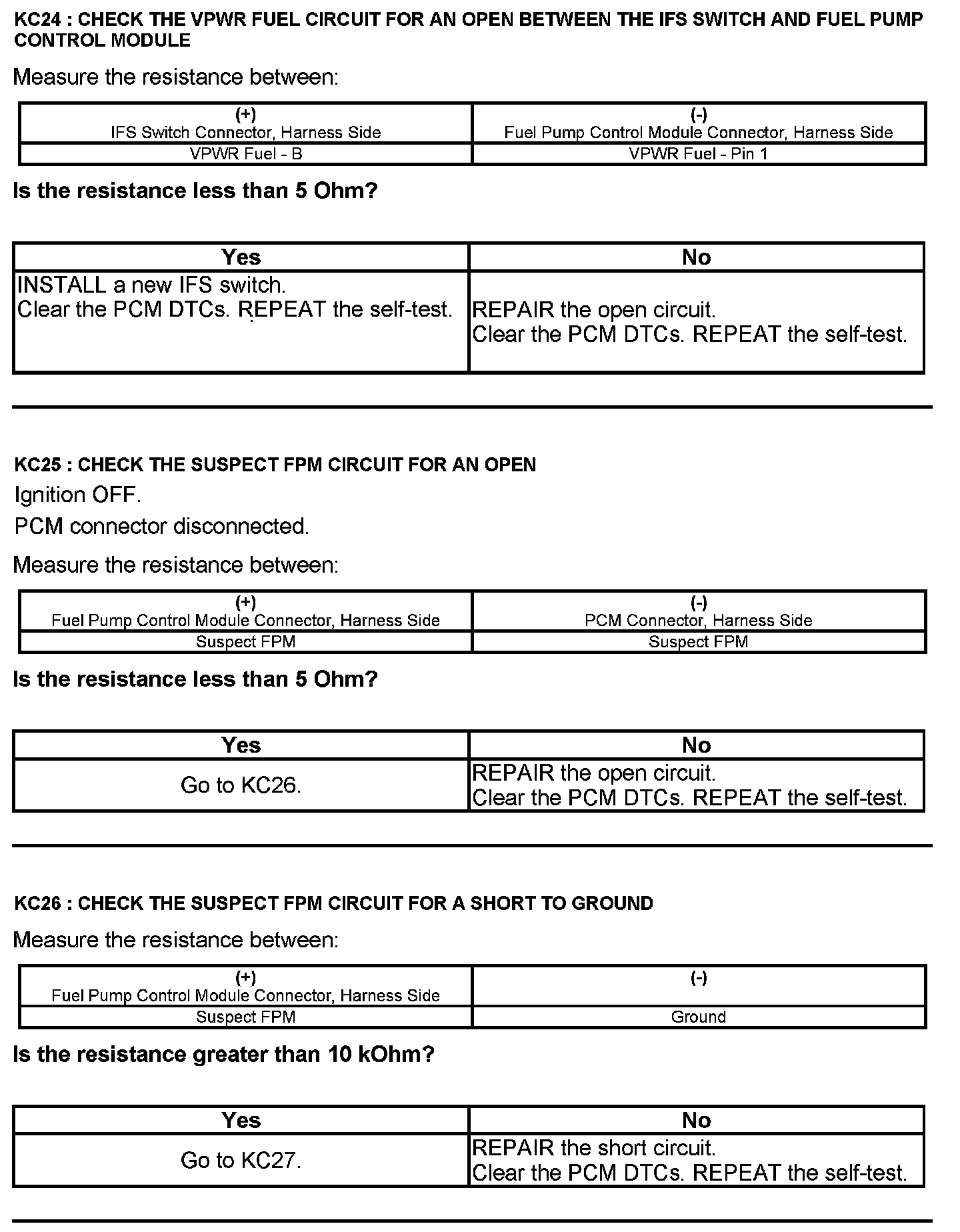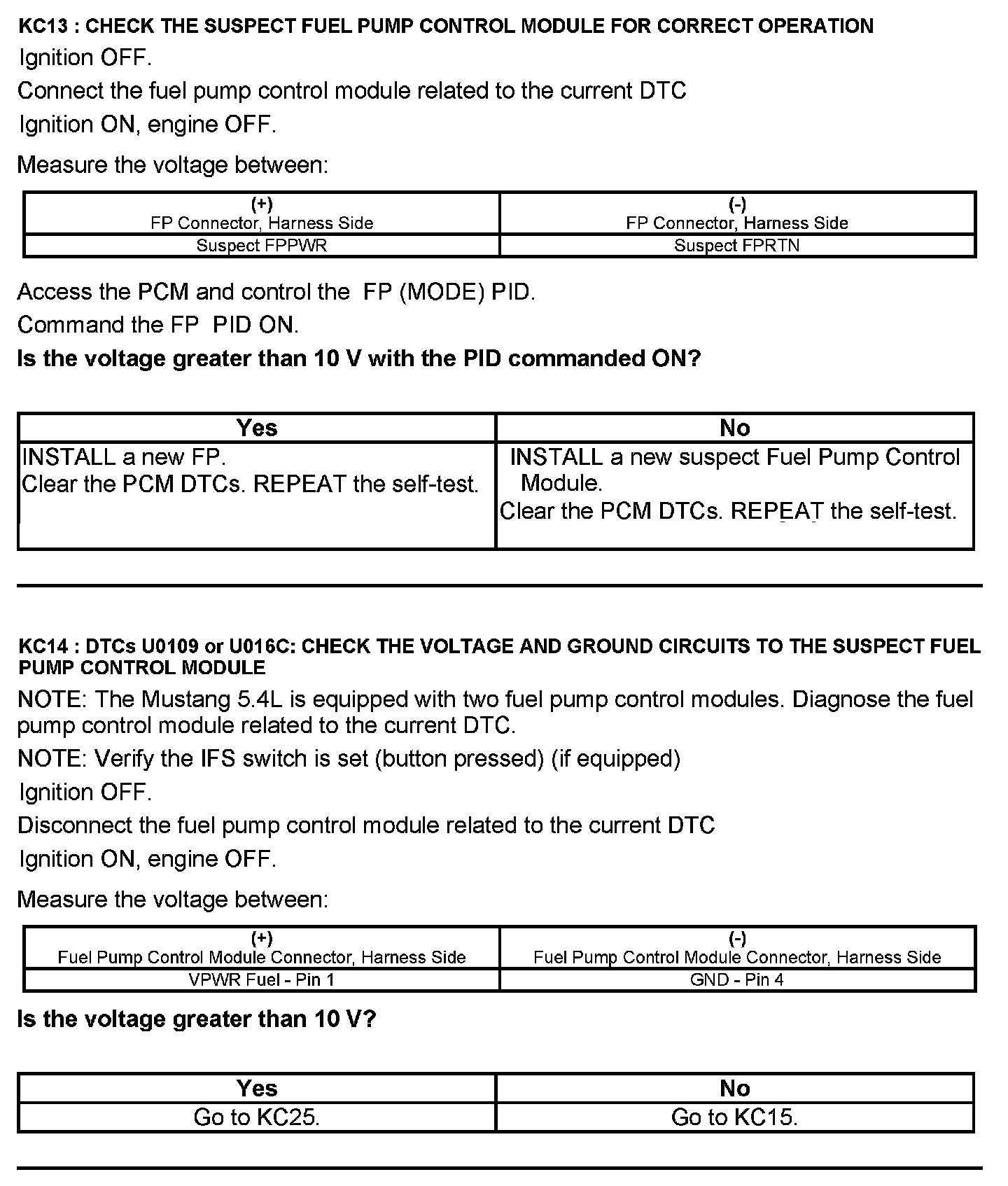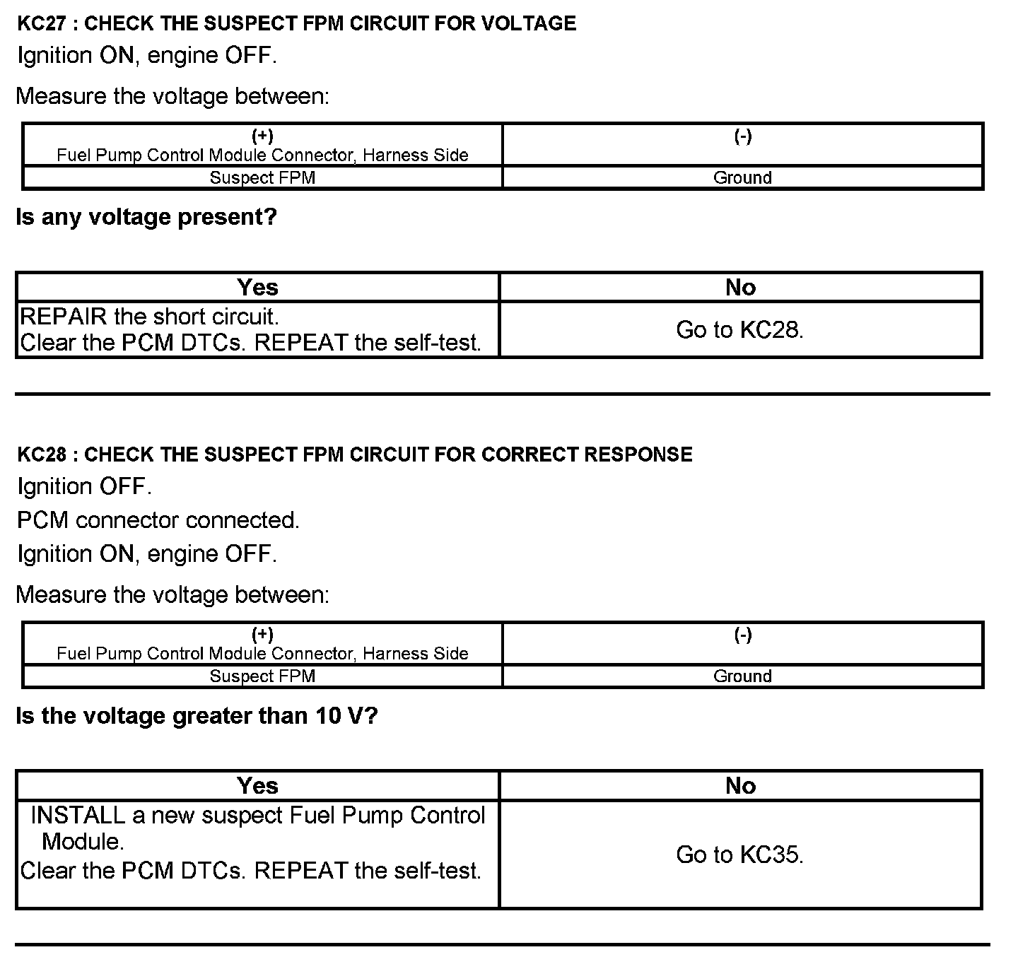 Home >> Ford >> 2012 >> E 150 V8-4.6L >> Repair and Diagnosis >> Powertrain Management >> Computers and Control Systems >> Testing and Inspection >> Pinpoint Tests >> Test KC: Fuel Pump Control Module