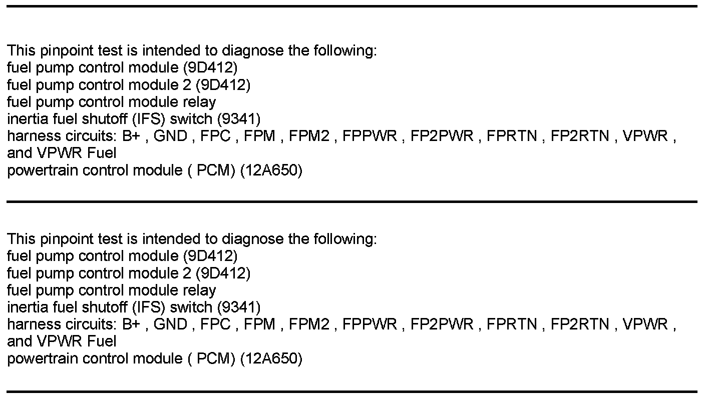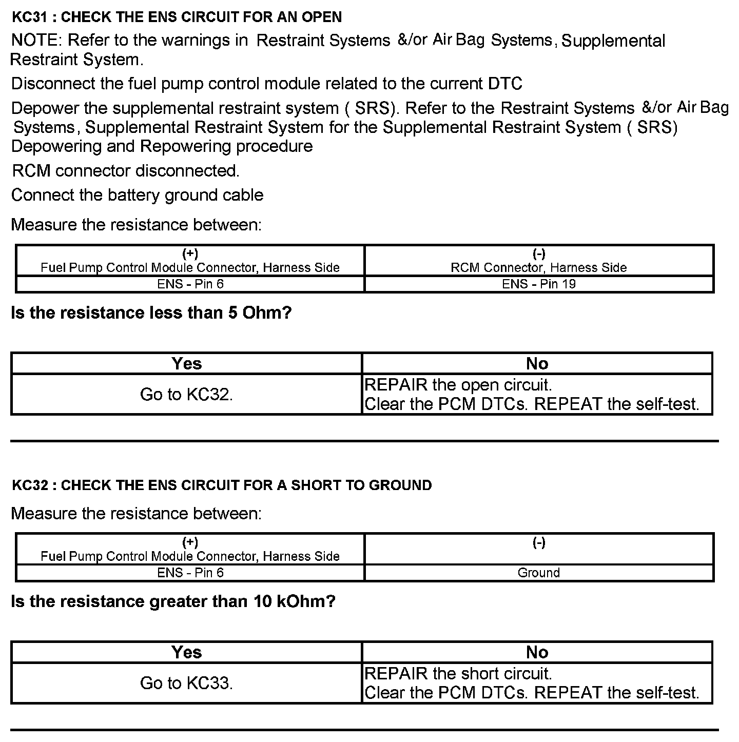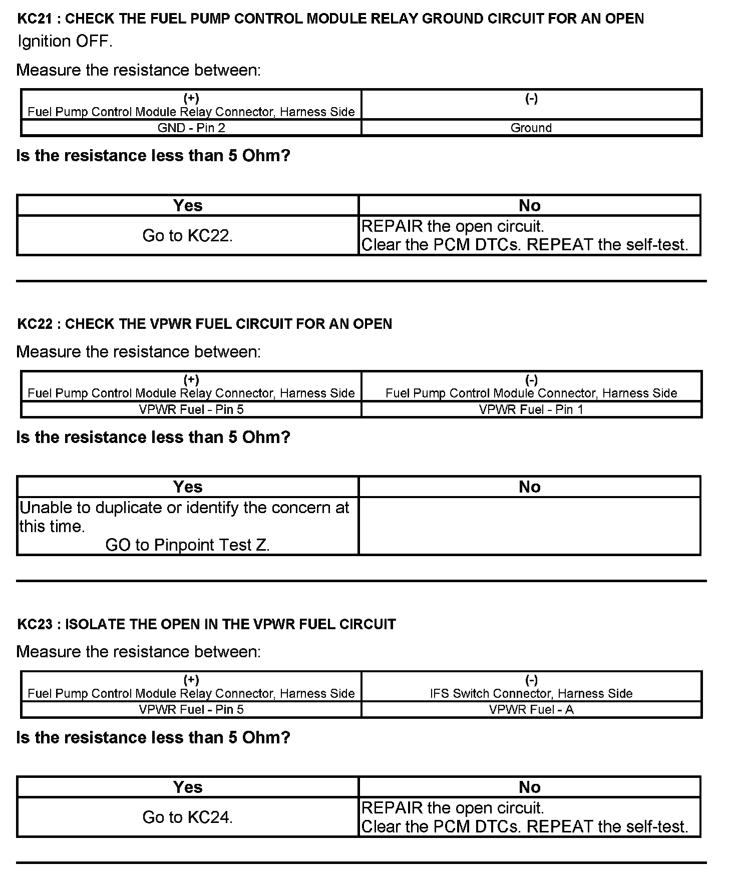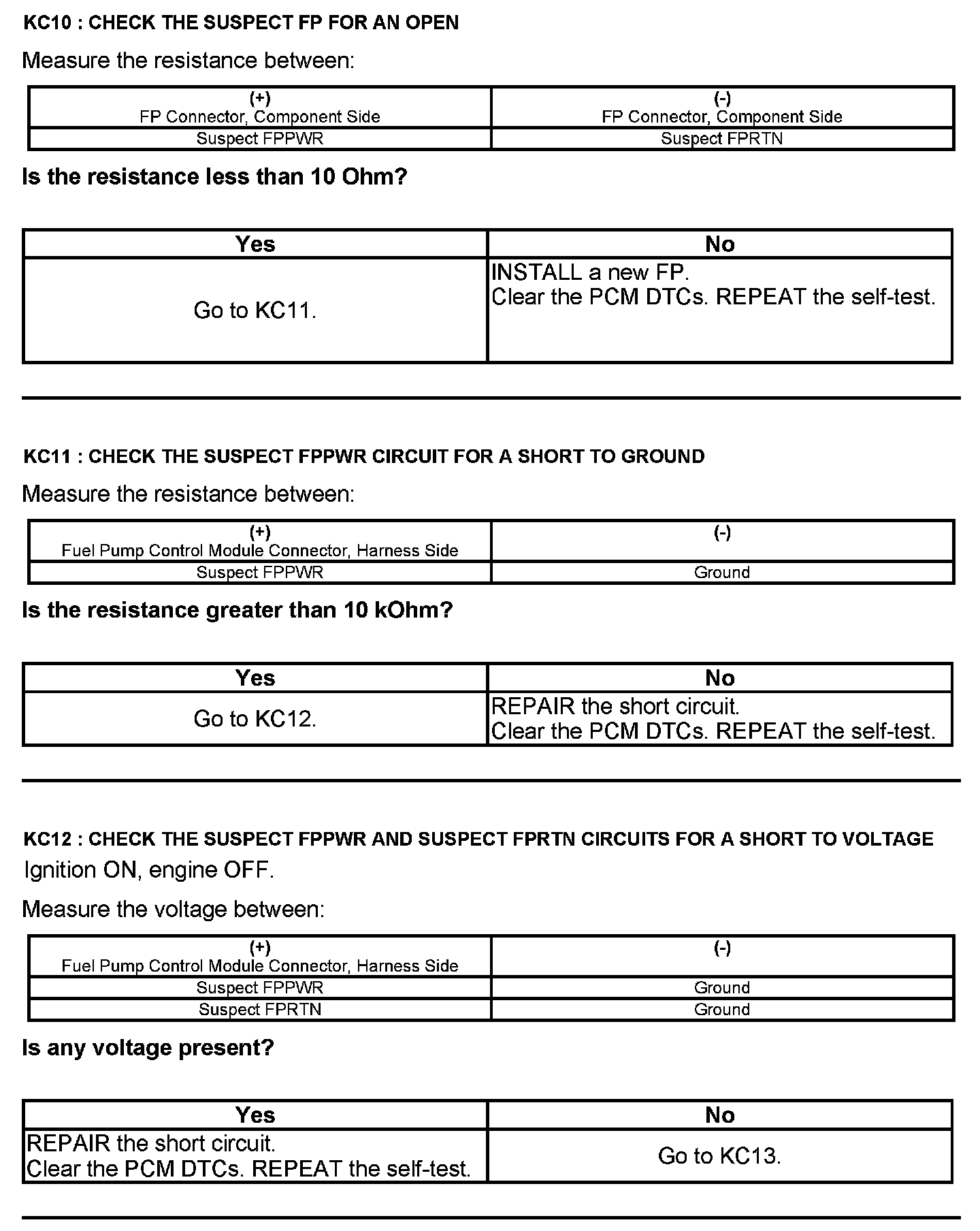 Home >> Ford >> 2012 >> E 150 V8-4.6L >> Repair and Diagnosis >> Powertrain Management >> Computers and Control Systems >> Testing and Inspection >> Pinpoint Tests >> Test KC: Fuel Pump Control Module