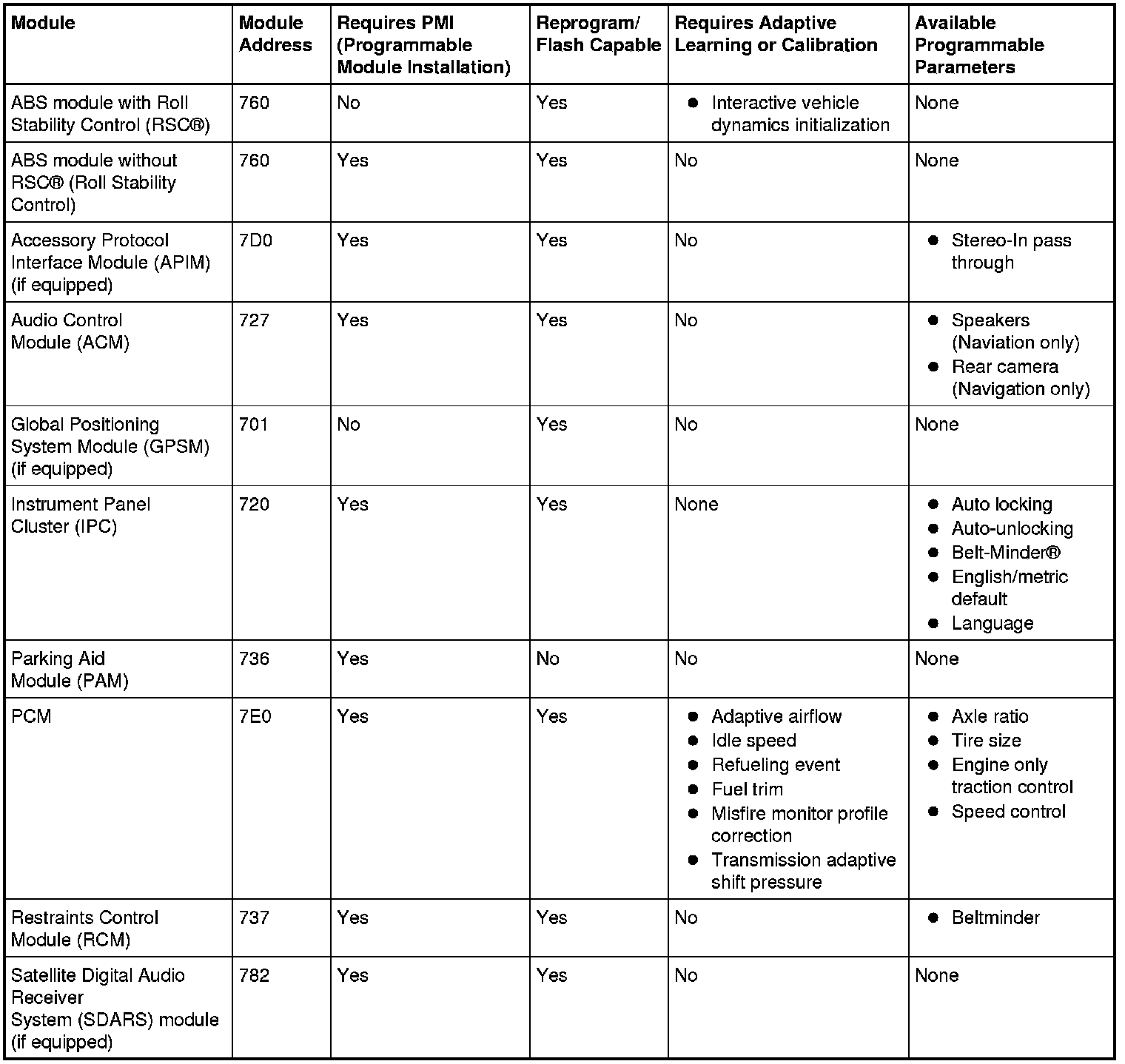 Programmable parameters are customer preference items that can be modified by the dealer via the scan tool or in some cases modified by the customer following a procedure listed in the vehicle Owner's Literature. While many configuration options may exist for a module, only a few of these options are programmable parameters.