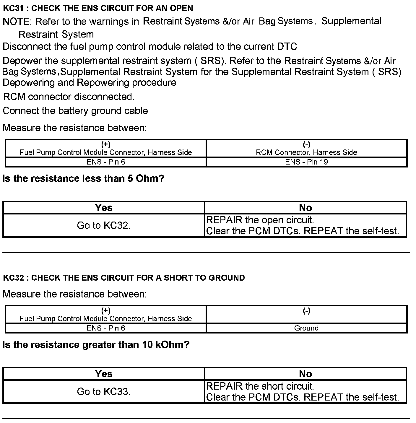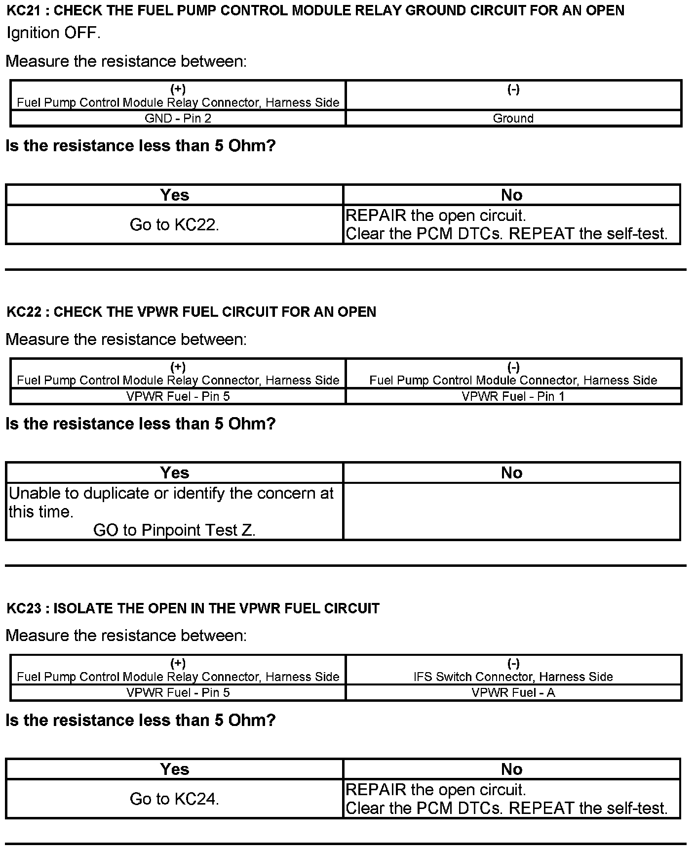 Test KC: Fuel Pump Control Module