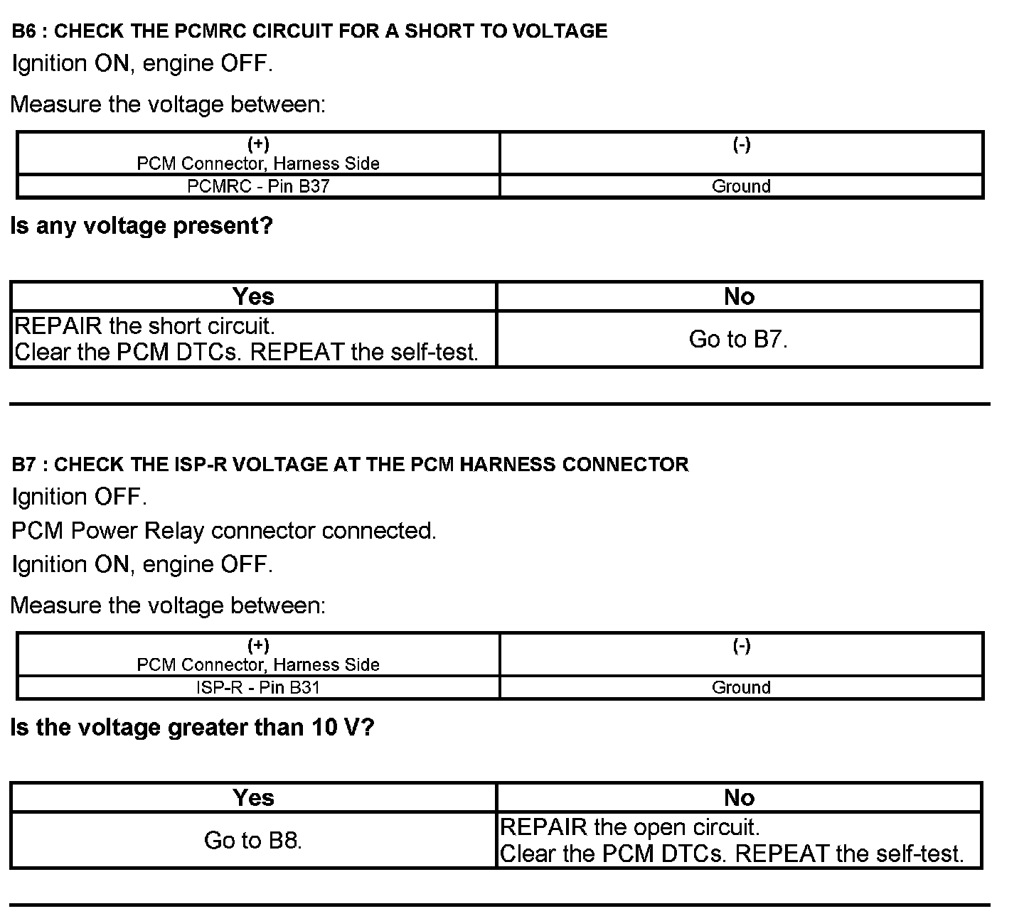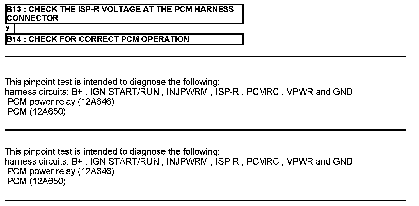 Home >> Ford >> 2012 >> E 450 V10-6.8L >> Repair and Diagnosis >> Powertrain Management >> Computers and Control Systems >> Testing and Inspection >> Pinpoint Tests >> Test B: Powertrain Control Module (PCM) Power Relay