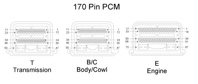 Powertrain Control Module (PCM) Connector - For PCM connector views or reference values, refer to Reference Values.