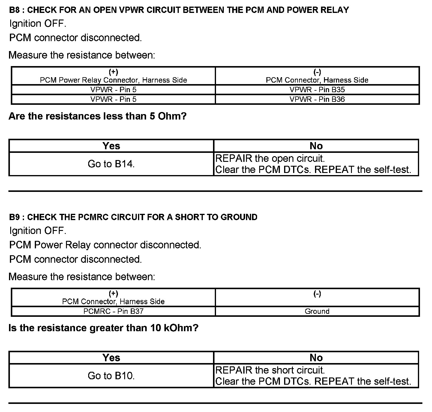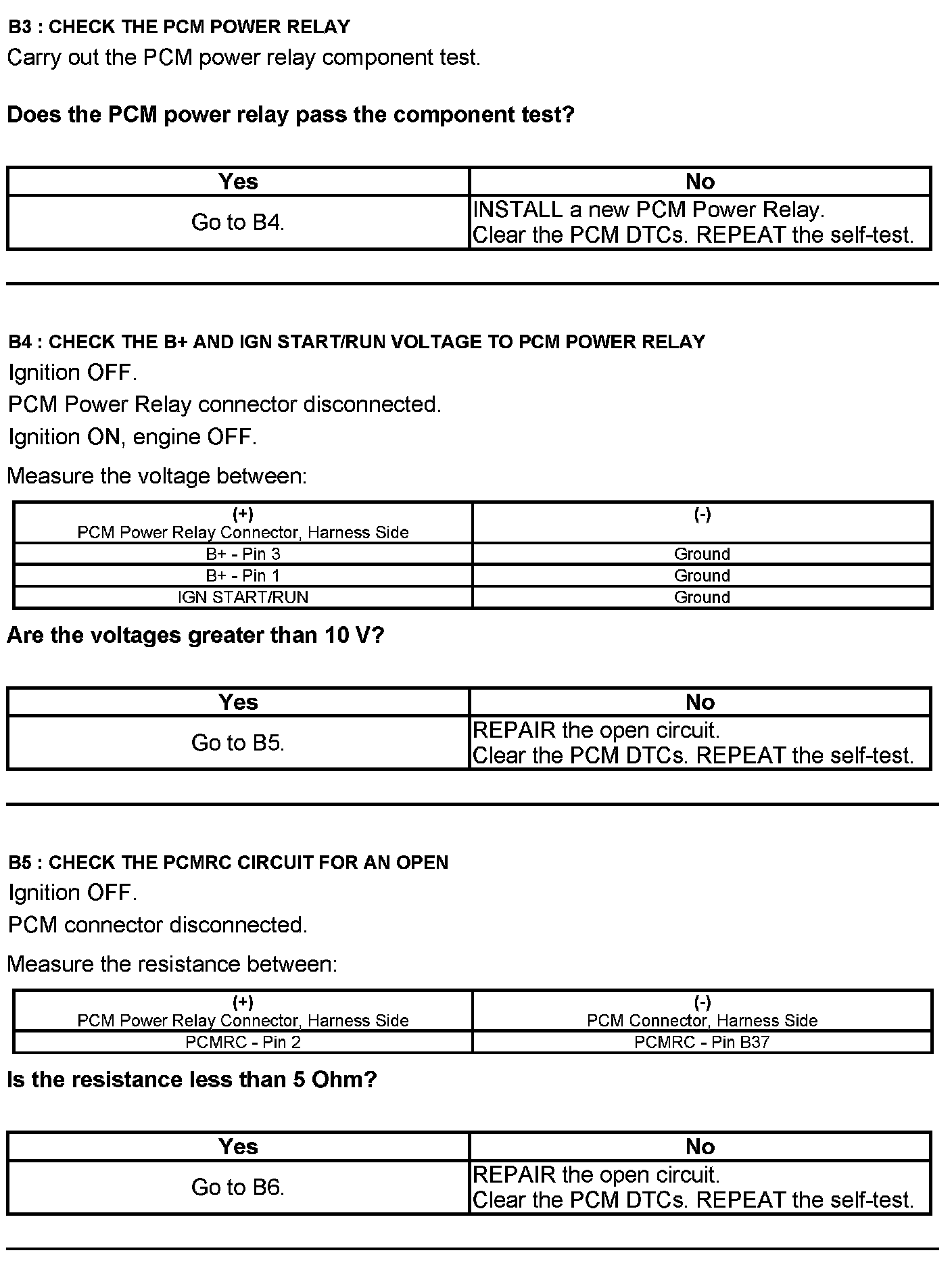 Test B: Powertrain Control Module (PCM) Power Relay