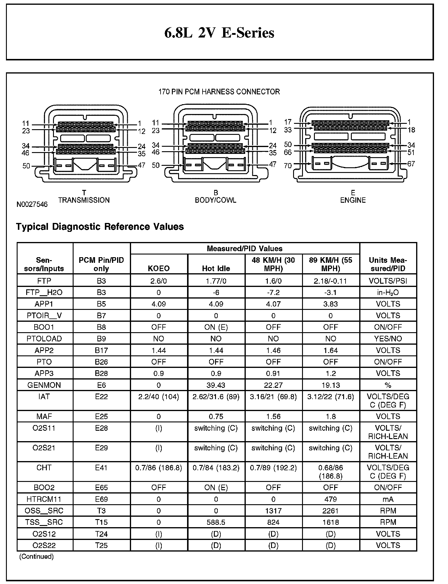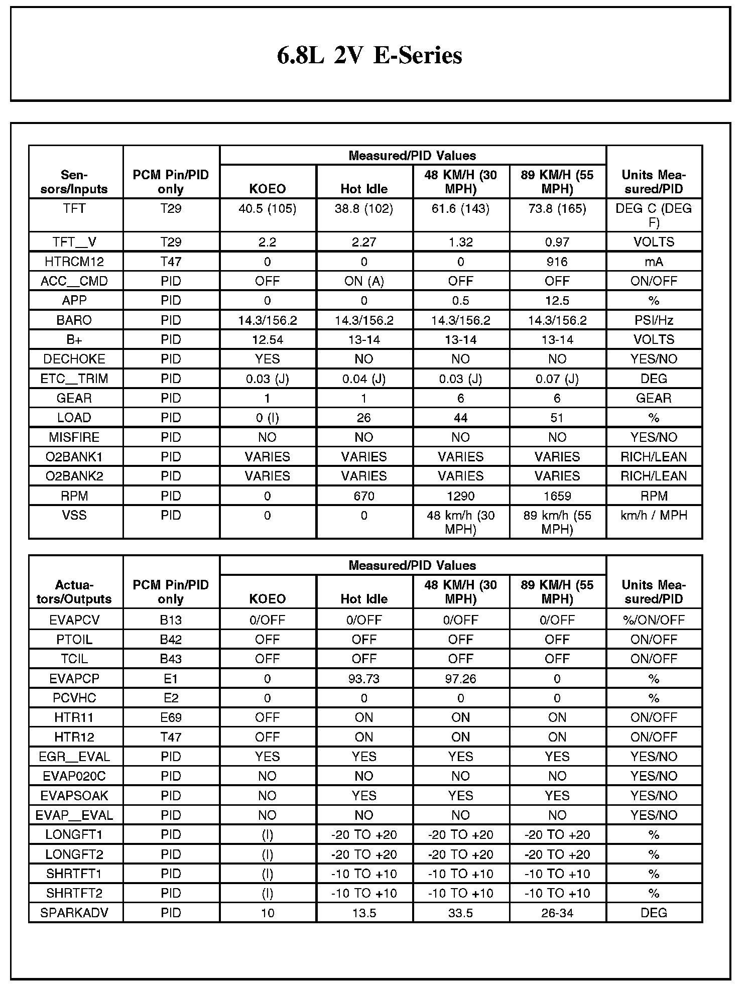 Home >> Ford >> 2012 >> E 450 V10-6.8L >> Repair and Diagnosis >> Powertrain Management >> Computers and Control Systems >> Testing and Inspection >> Scan Tool Testing and Procedures >> Typical Diagnostic Reference Values