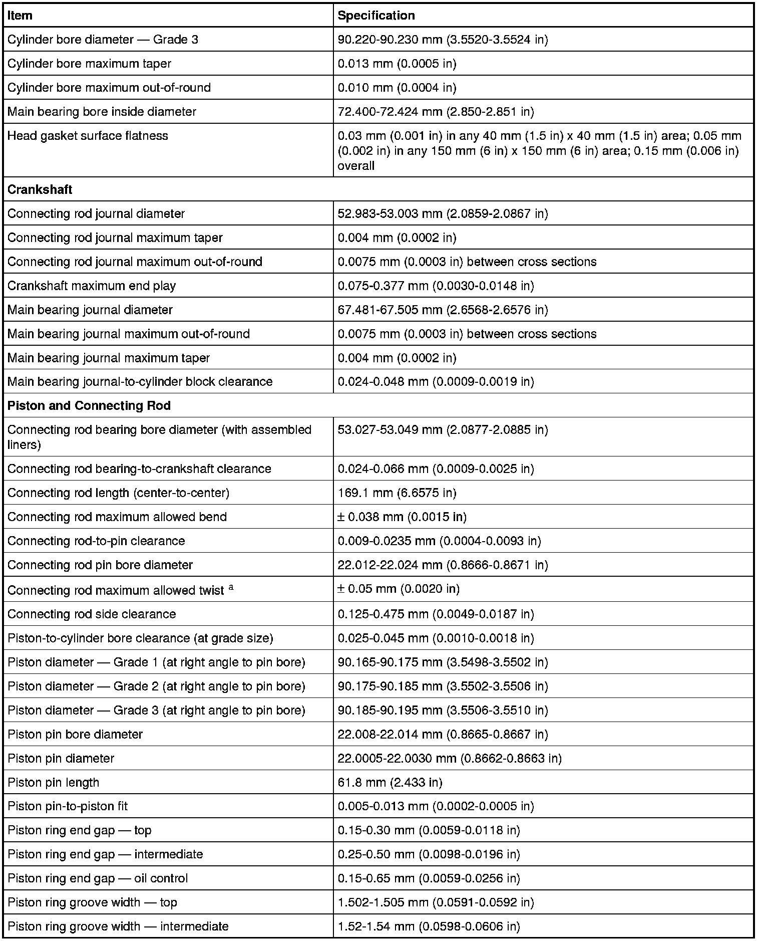 a The pin bore and crank bearing bore must be parallel and in the same vertical plane within the specified total difference when measured at the ends of a 203 mm bar, 105.5 mm on each side of rod centerline.