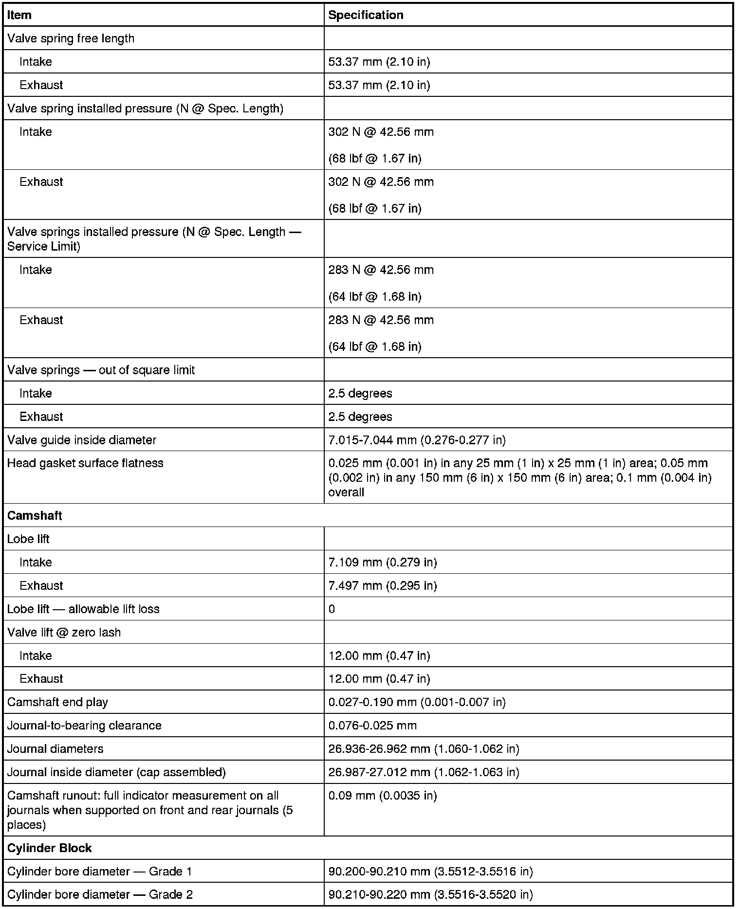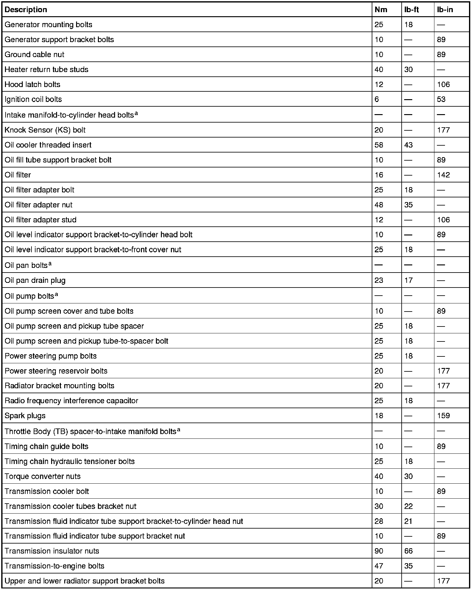 Torque Specifications