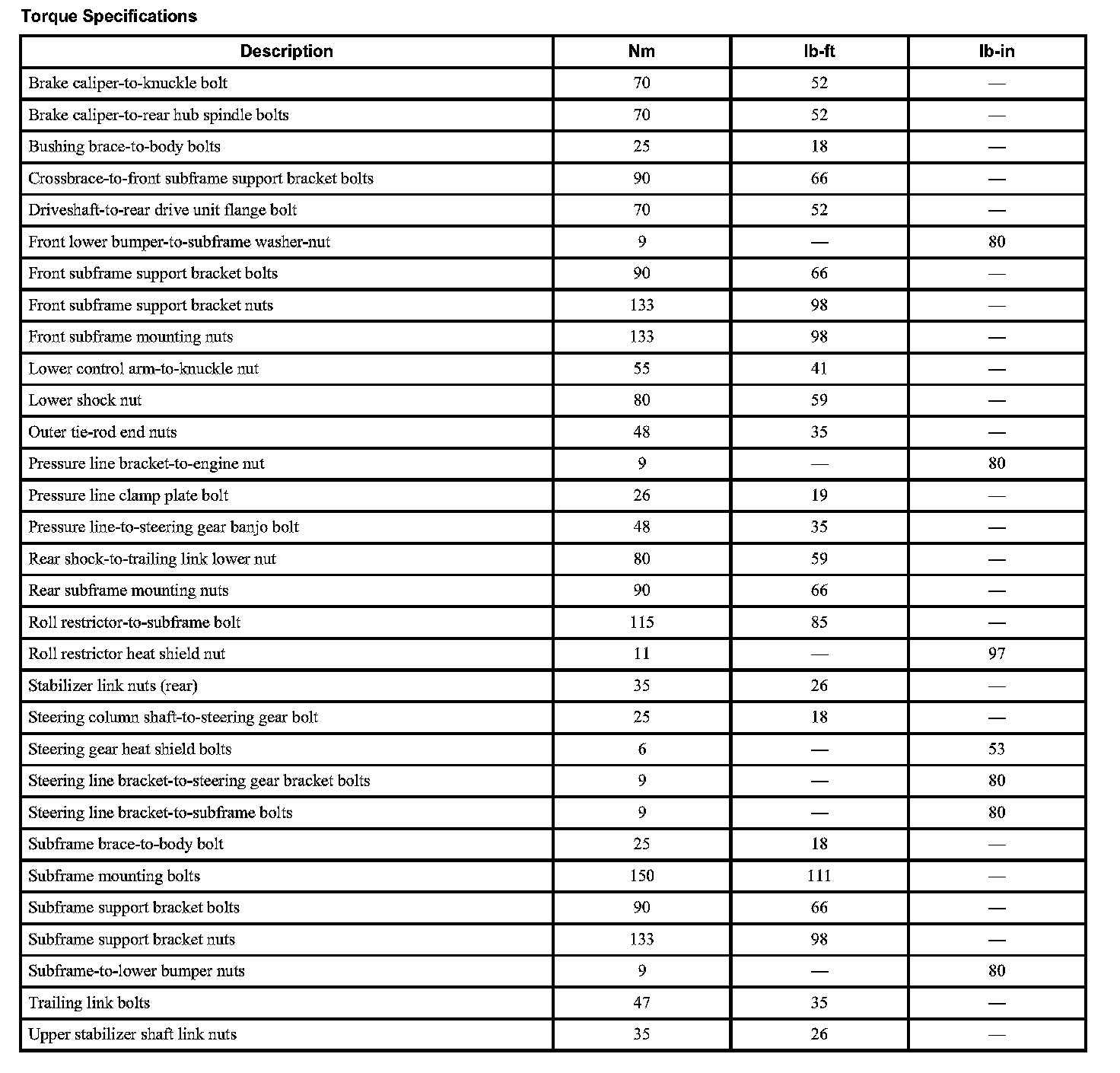 Subframe: Specifications