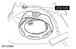 5. NOTICE: Carefully install the lock ring wrench to avoid damaging the fuel level sensor when removing the lock ring.