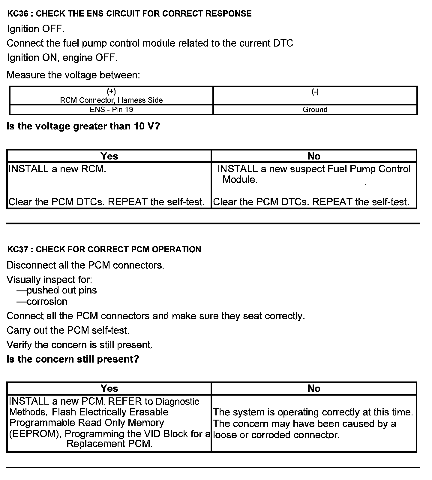 Home >> Ford >> 2012 >> Edge AWD V6-3.7L >> Repair and Diagnosis >> Powertrain Management >> Computers and Control Systems >> Testing and Inspection >> Pinpoint Tests >> Test KC: Fuel Pump Control Module