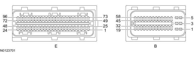 Powertrain Control Module (PCM) Connector - For PCM connector views or reference values, refer to Reference Values.