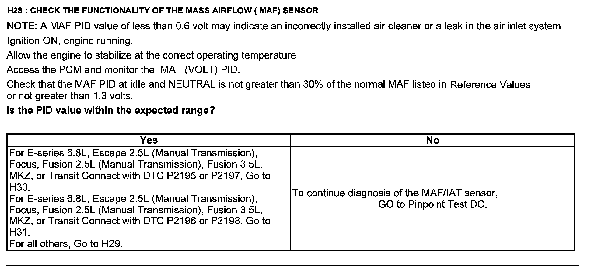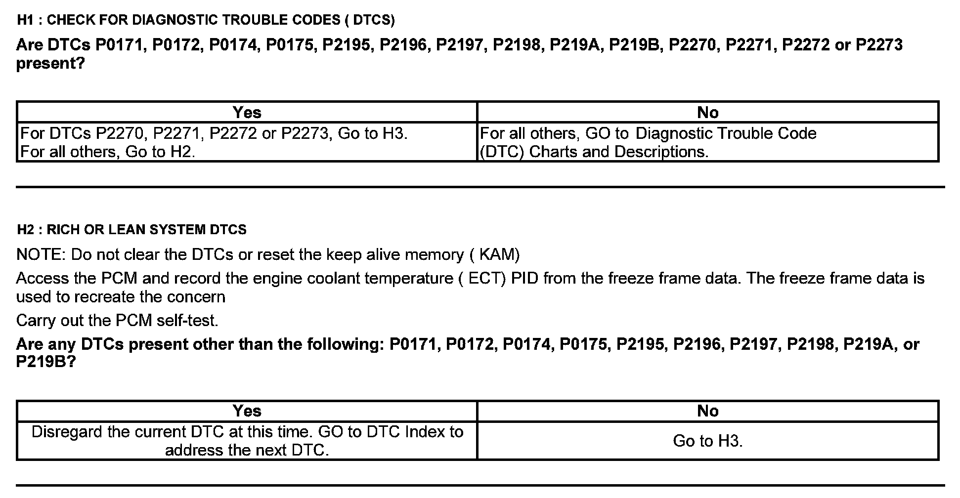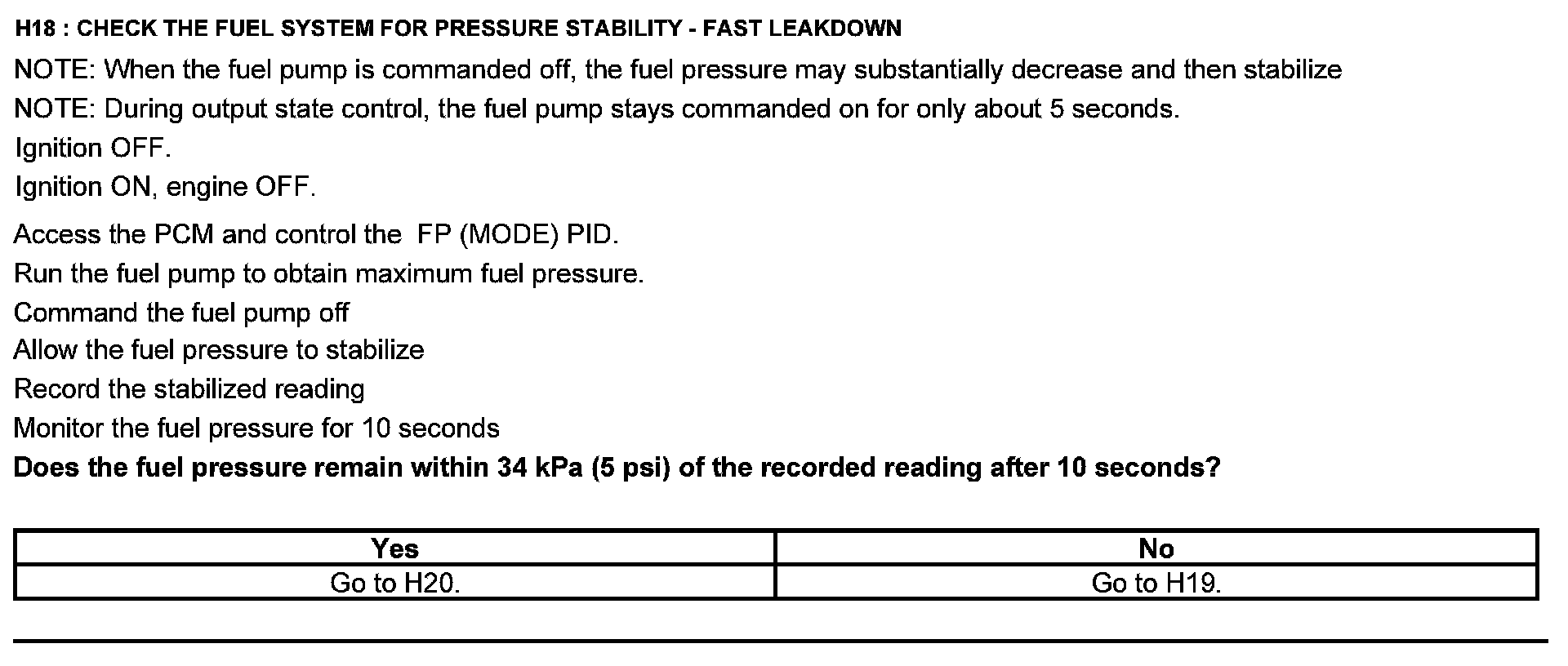 Home >> Ford >> 2012 >> Edge FWD L4-2.0L Turbo >> Repair and Diagnosis >> Powertrain Management >> Computers and Control Systems >> Testing and Inspection >> Pinpoint Tests >> Test H: Fuel Control