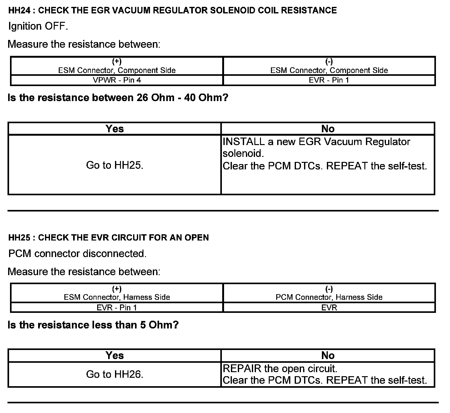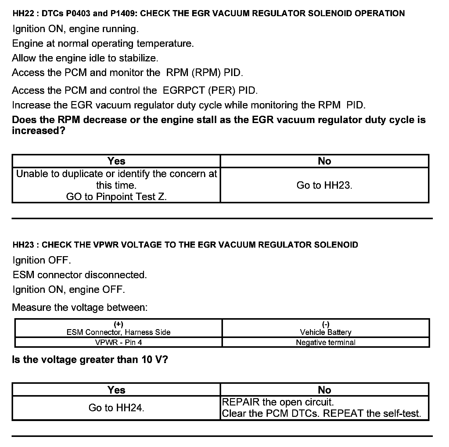 Home >> Ford >> 2012 >> Edge FWD L4-2.0L Turbo >> Repair and Diagnosis >> Powertrain Management >> Computers and Control Systems >> Testing and Inspection >> Pinpoint Tests >> Test HH: Exhaust Gas Recirculation System Module (ESM)
