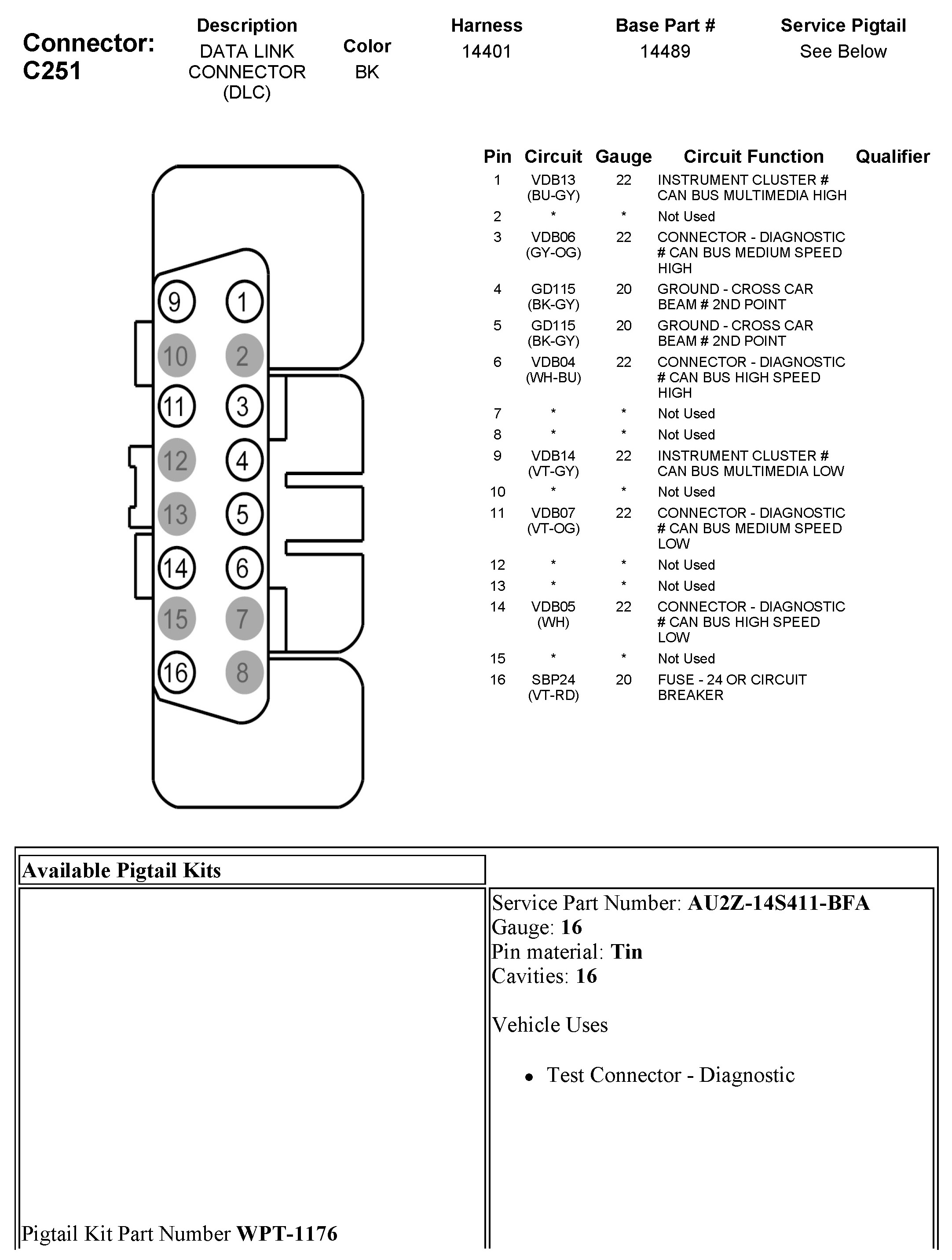 Data Link Connector: Diagrams