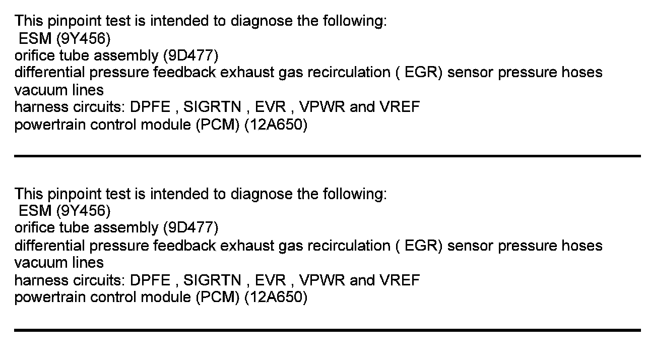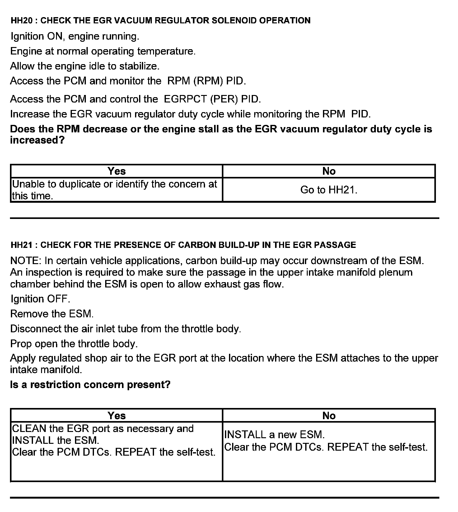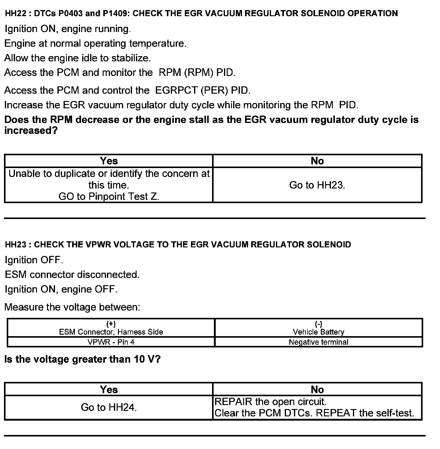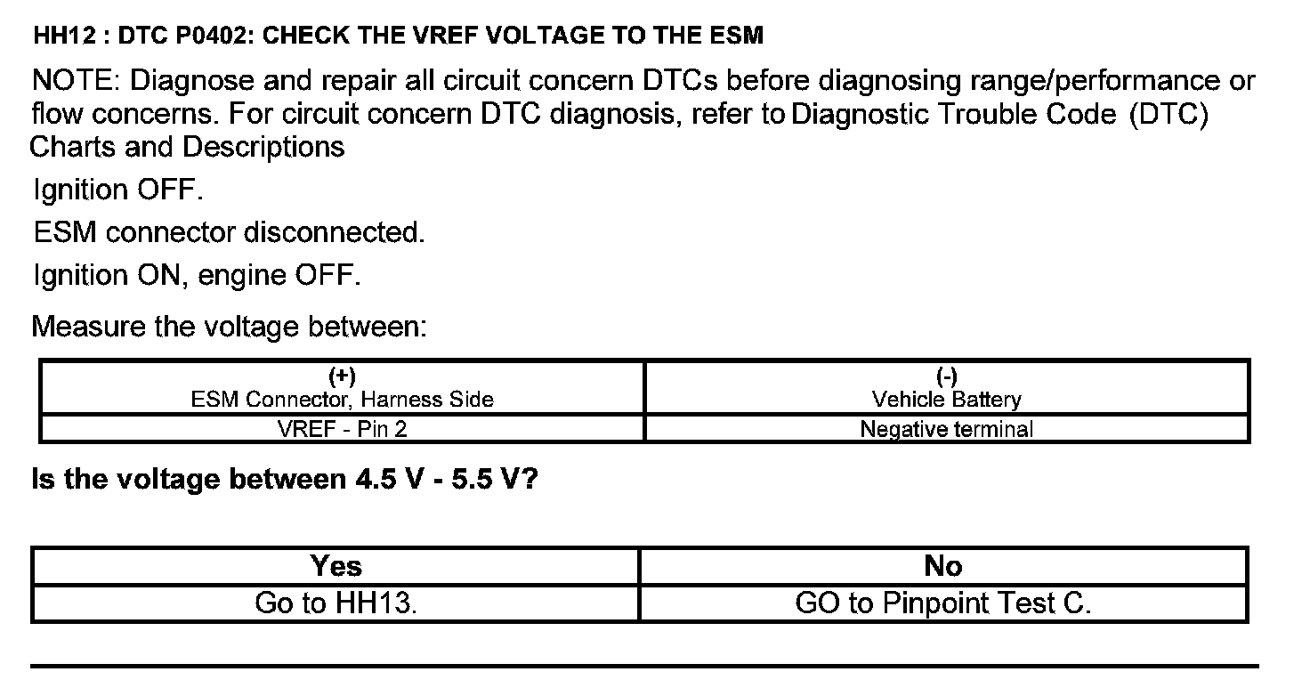 Home >> Ford >> 2012 >> Edge FWD V6-3.5L >> Repair and Diagnosis >> Powertrain Management >> Computers and Control Systems >> Testing and Inspection >> Pinpoint Tests >> Test HH: Exhaust Gas Recirculation System Module (ESM)