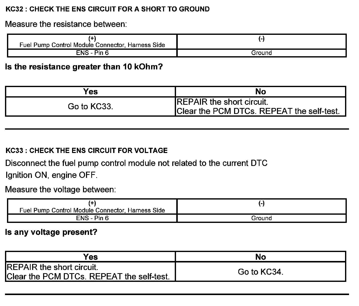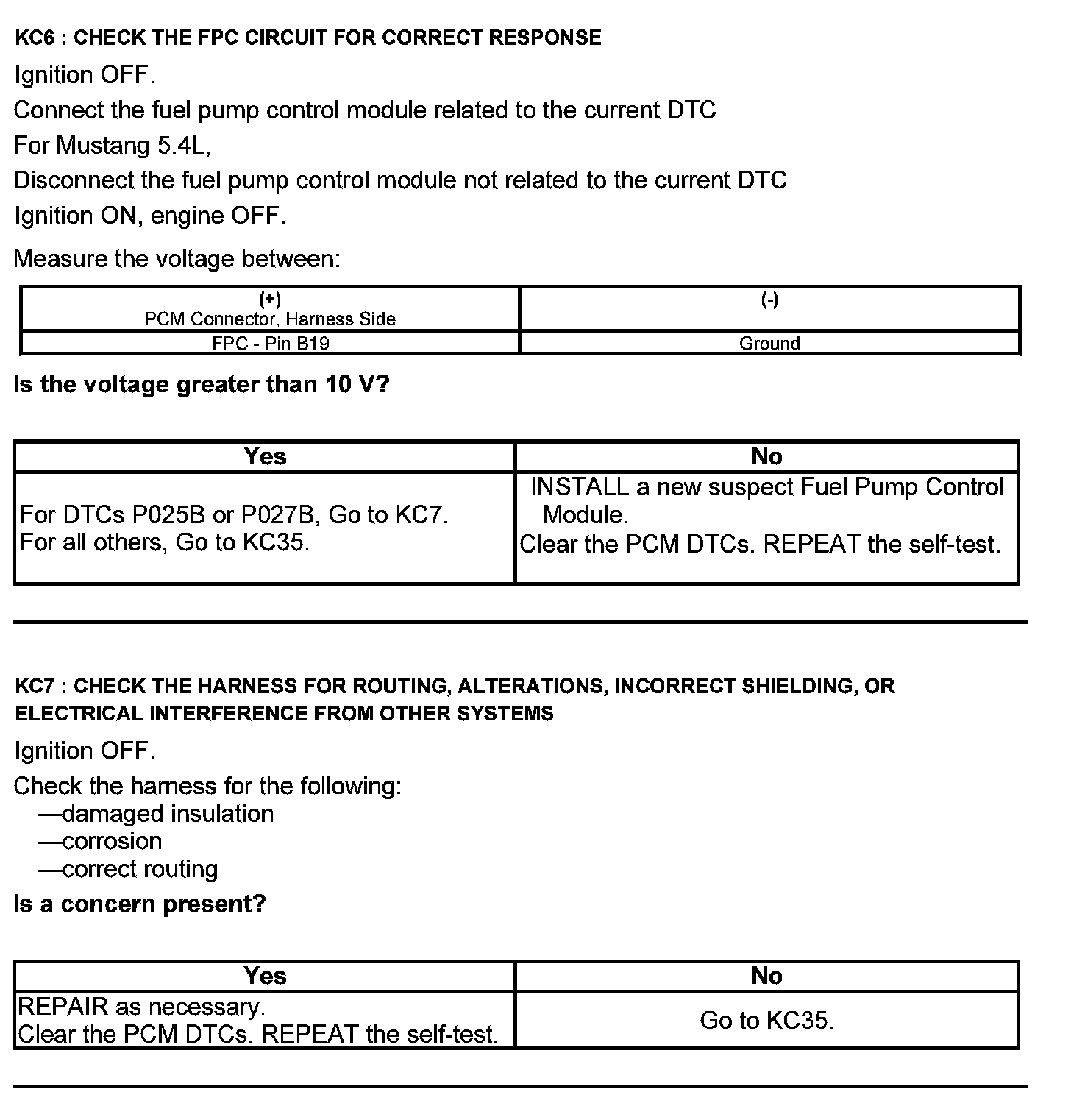 Home >> Ford >> 2012 >> Edge FWD V6-3.5L >> Repair and Diagnosis >> Powertrain Management >> Computers and Control Systems >> Testing and Inspection >> Pinpoint Tests >> Test KC: Fuel Pump Control Module