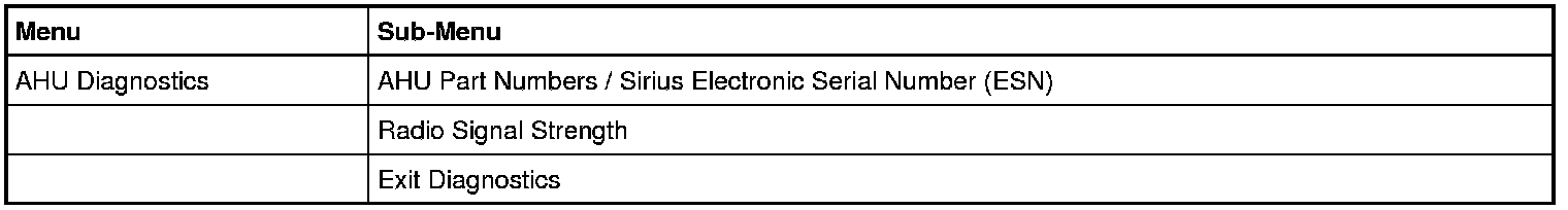 NOTE: The AHU Diagnostics refers to the ACM (Audio Control Module) and EFP Diagnostics refers to the Front Controls Interface Module (FCIM).