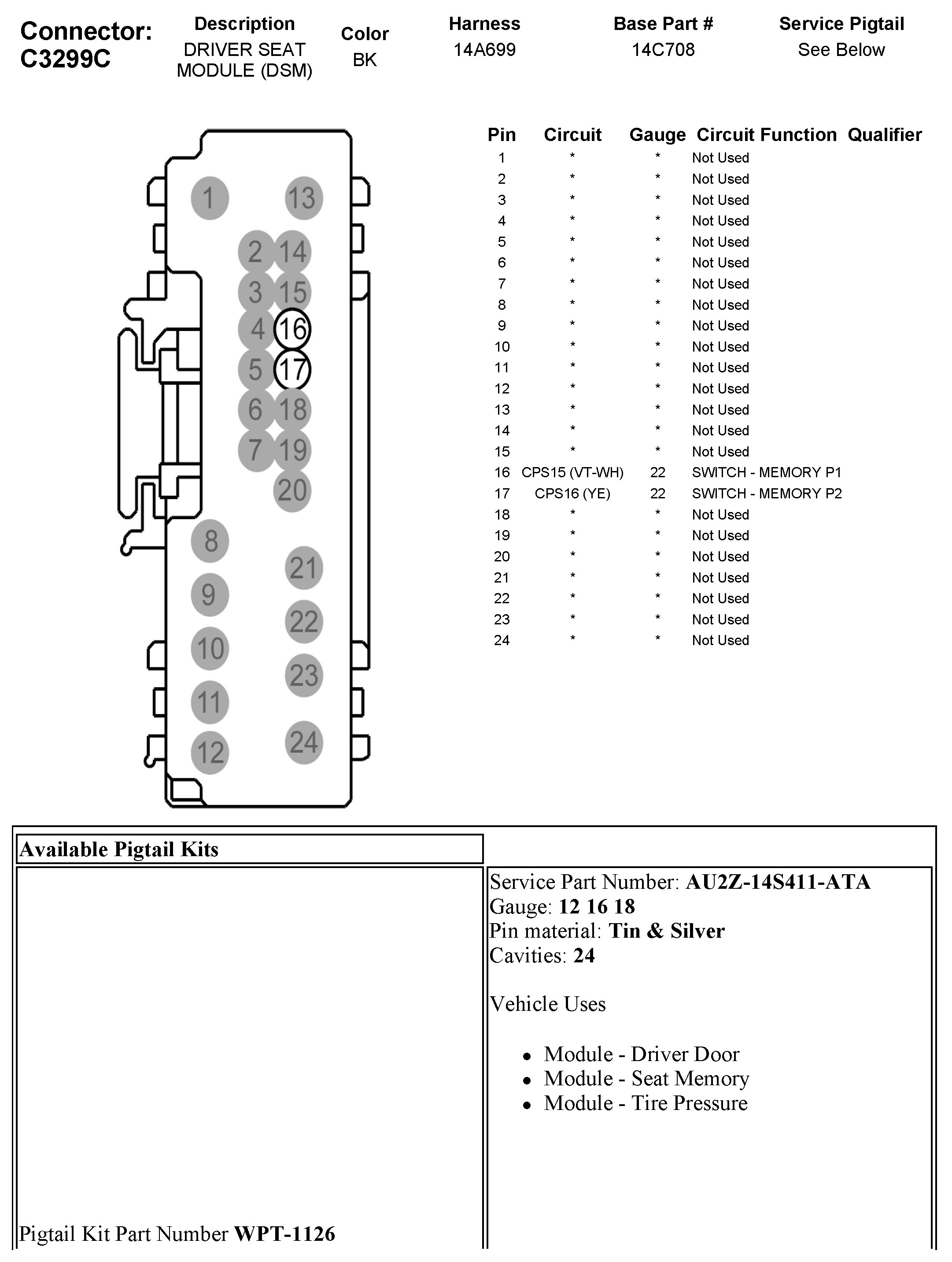 C3299C Driver Seat Module (DSM)