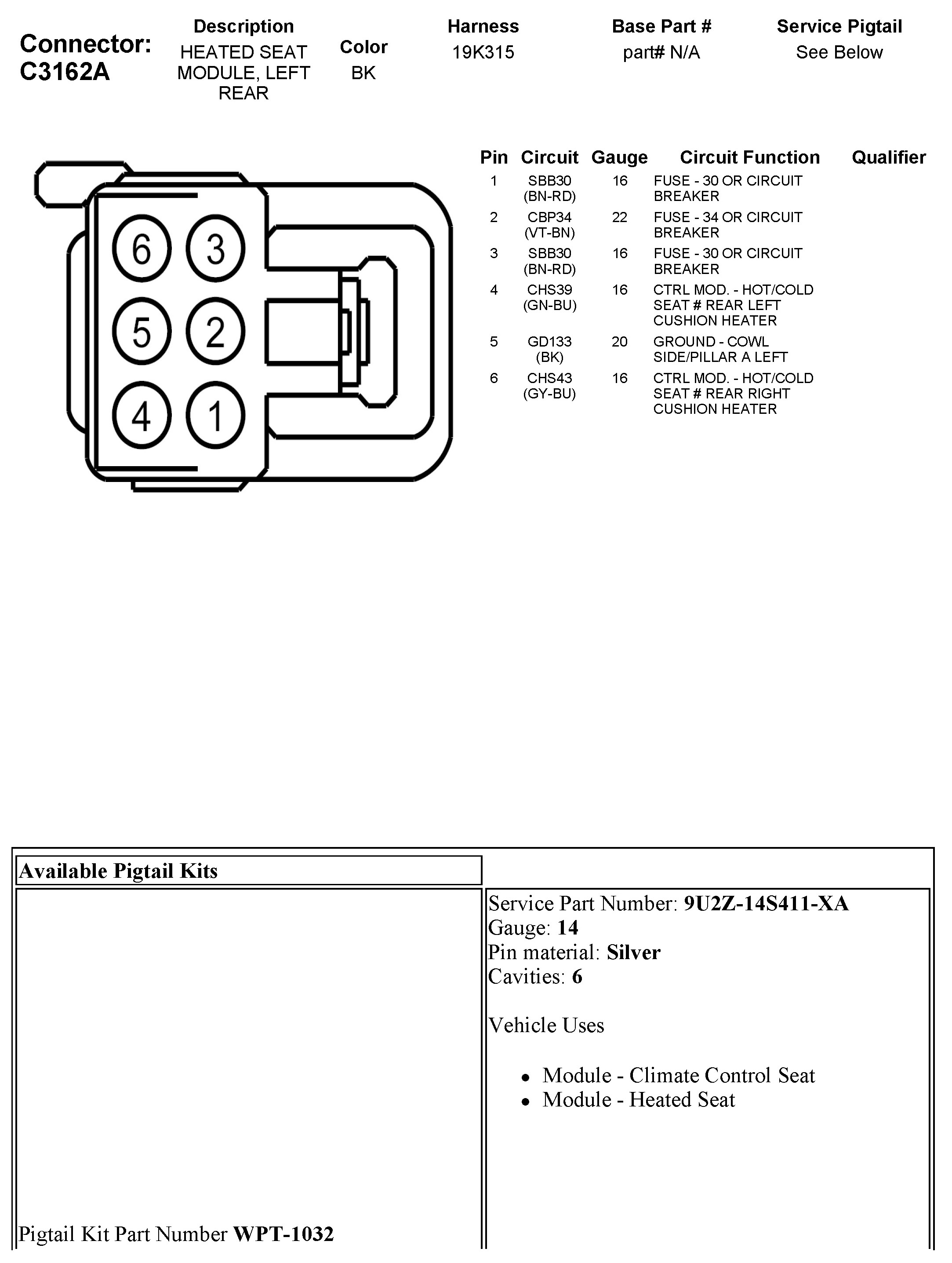 C3162A Heated Seat Module, Left Rear