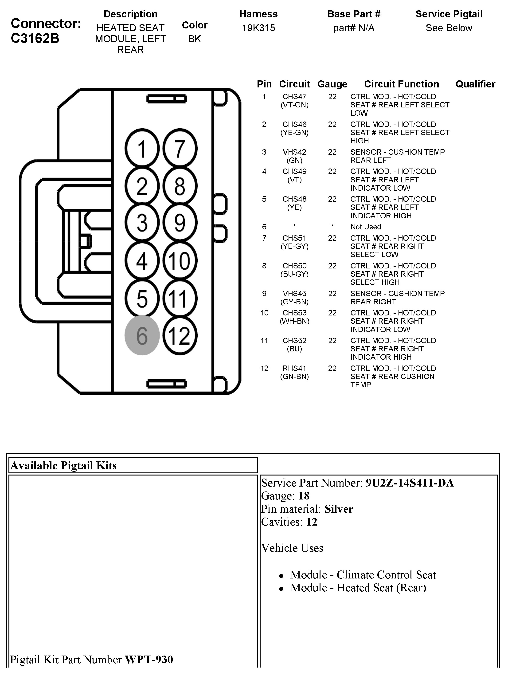 C3162B Heated Seat Module, Left Rear