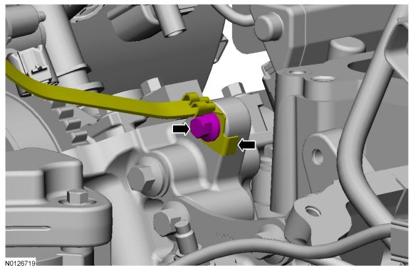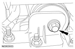 15. Tighten the transaxle mount through bolt to 175 Nm (129 lb-ft).