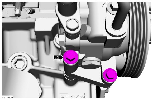 - Support the power steering pump and hose away from the front of the engine with a length of mechanic's wire.