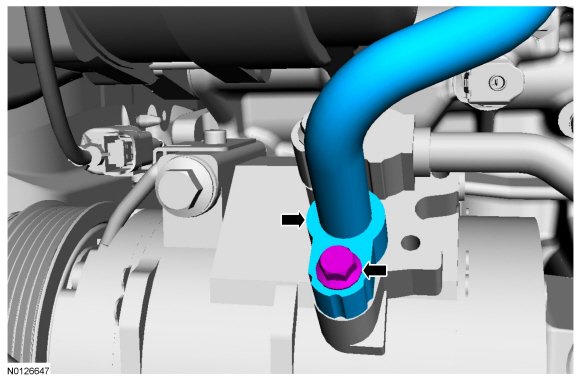 24. Using a new O-ring seal, connect the A/C pressure tube fitting and install the nut.