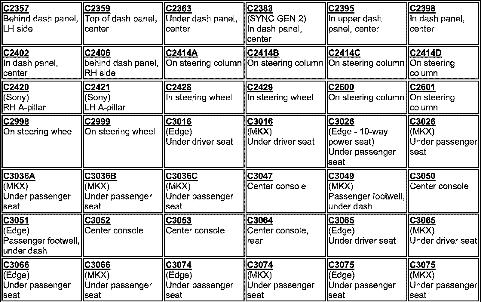 Connector Locations