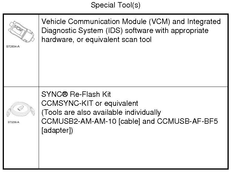- The scan tool and the USB (Universal Serial Bus) cable part number CCMUSB2-AM-AM-10 with the male A to mini female B adapter part number CCMUSB-AF-BF5 or equivalent are required to complete the flash procedure.