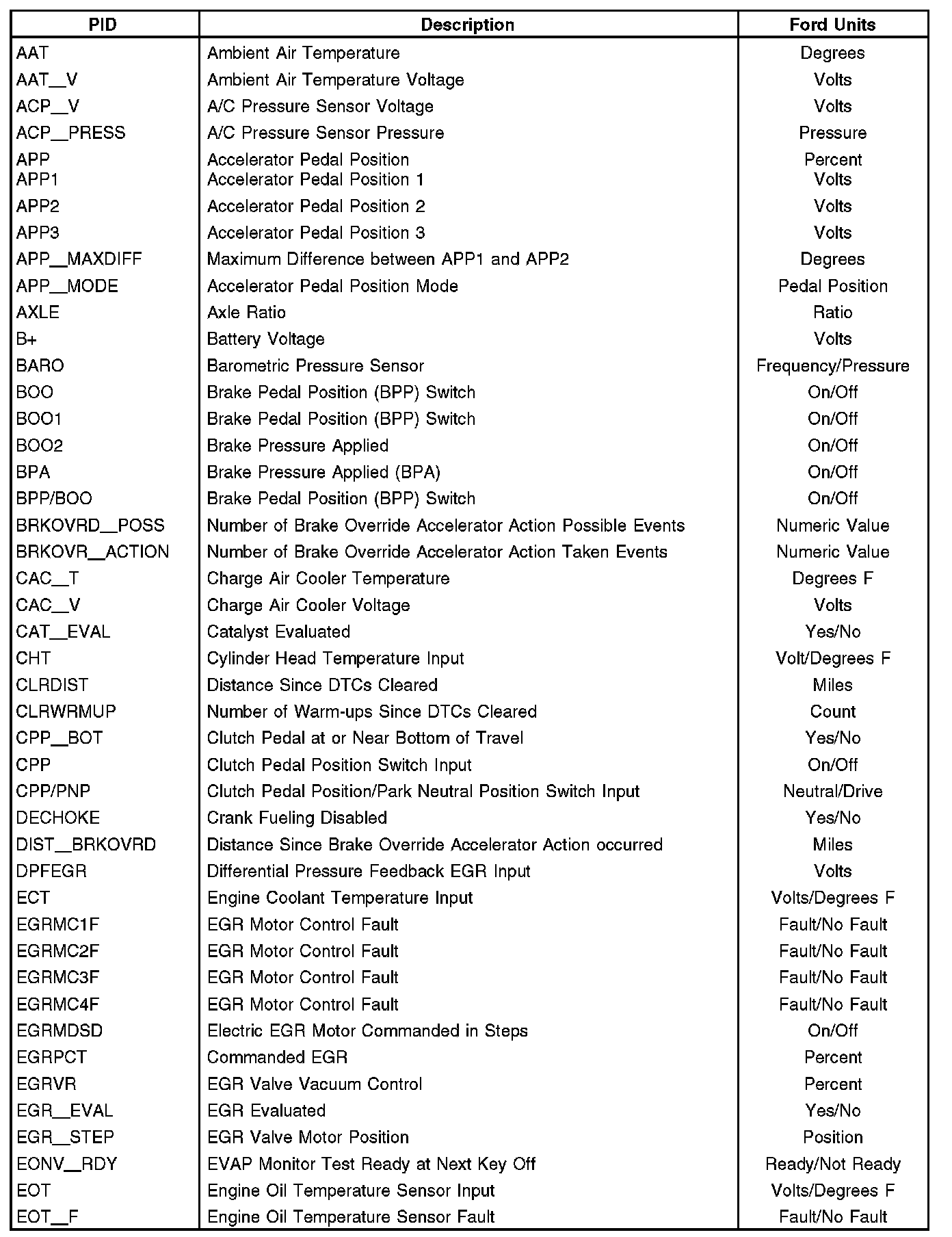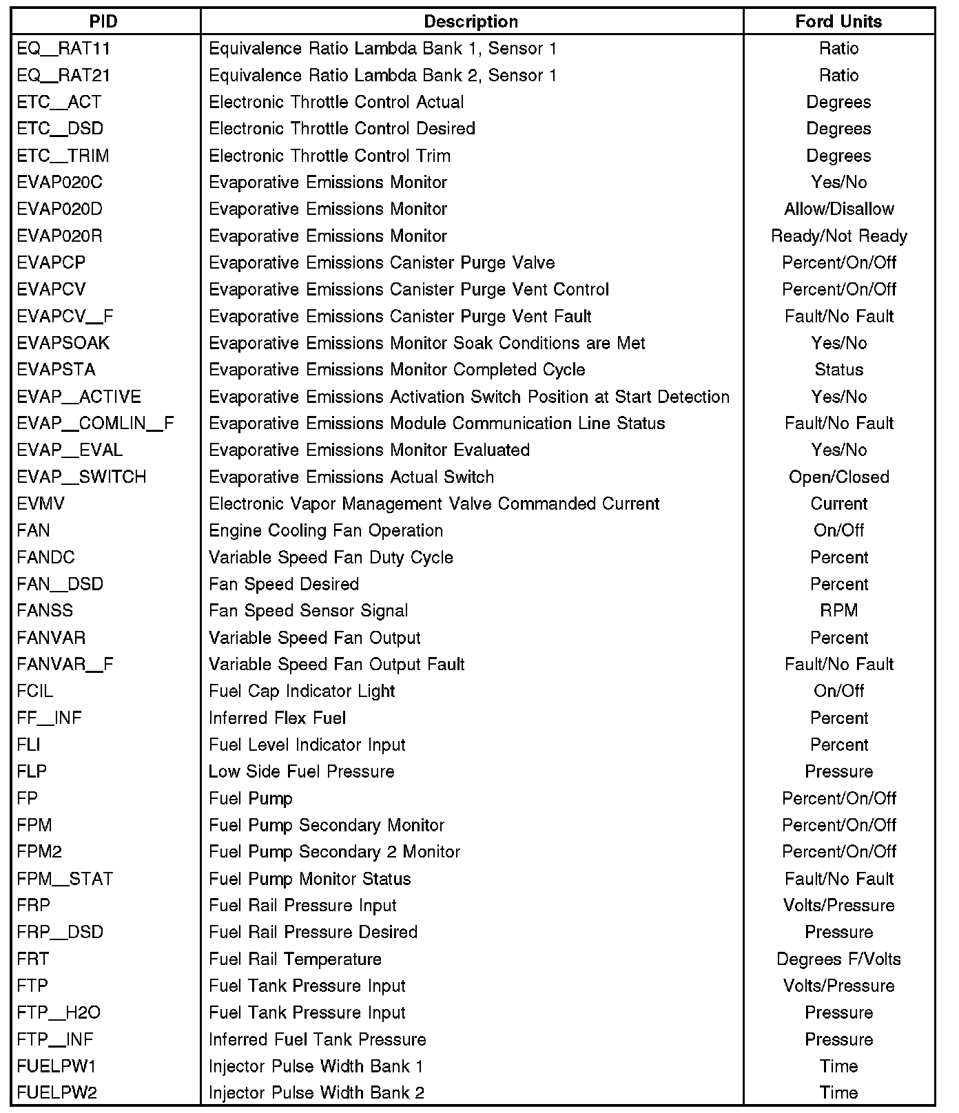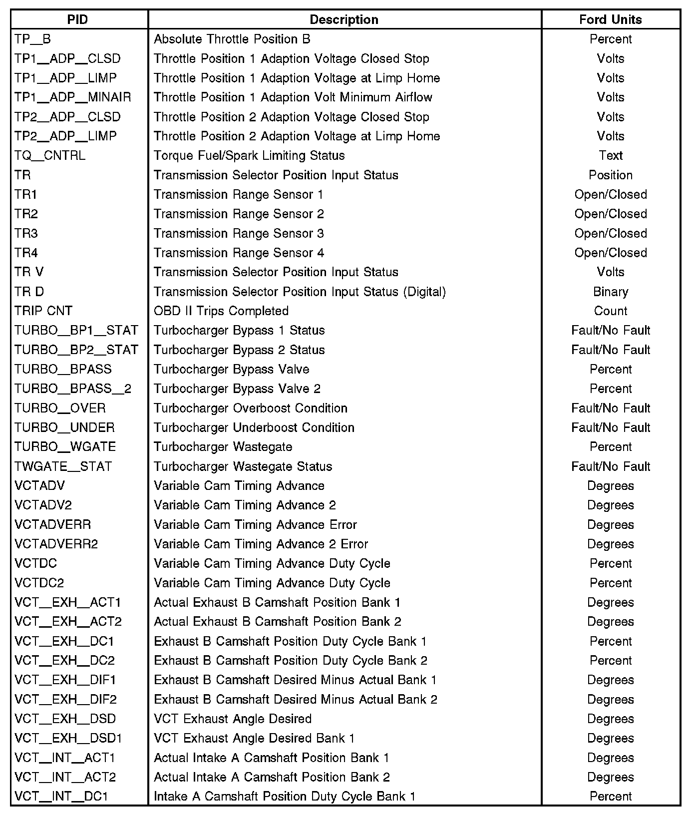 Note: This is not a complete list of Ford PIDs available. This is a list of Ford PIDs.