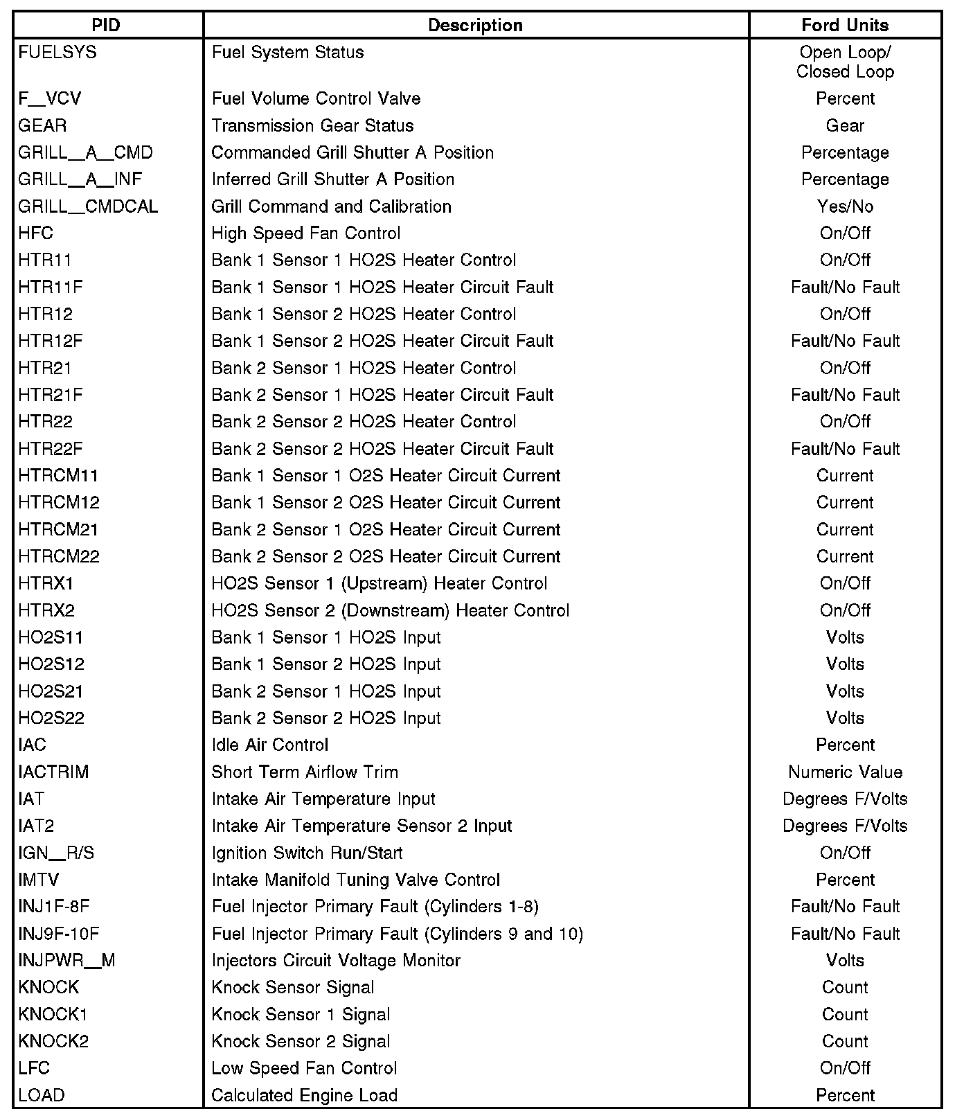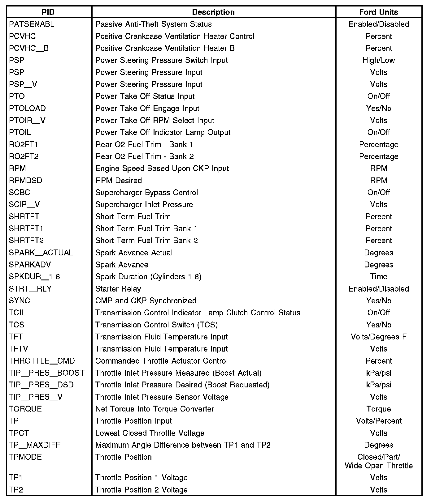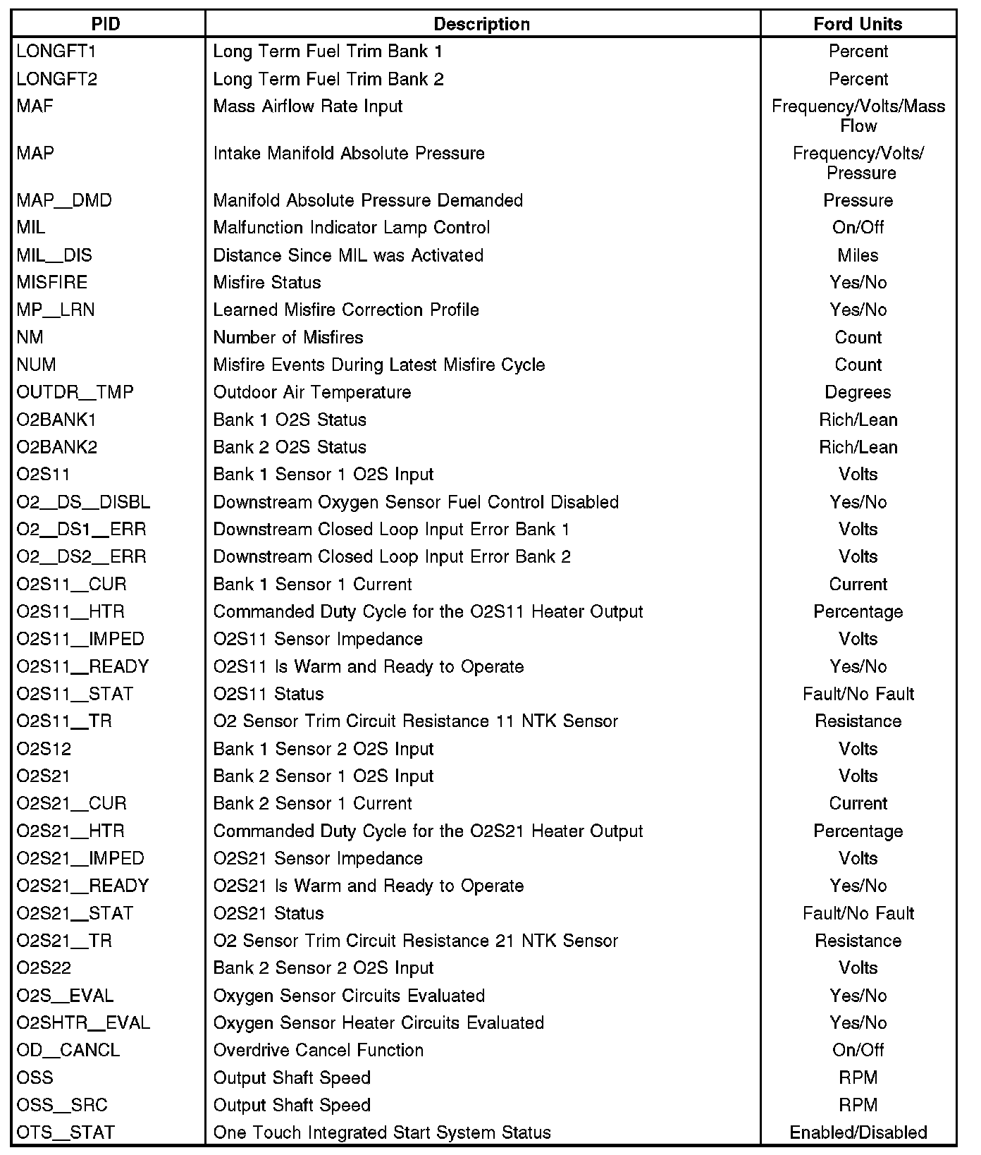 Note: This is not a complete list of Ford PIDs available. This is a list of Ford PIDs.