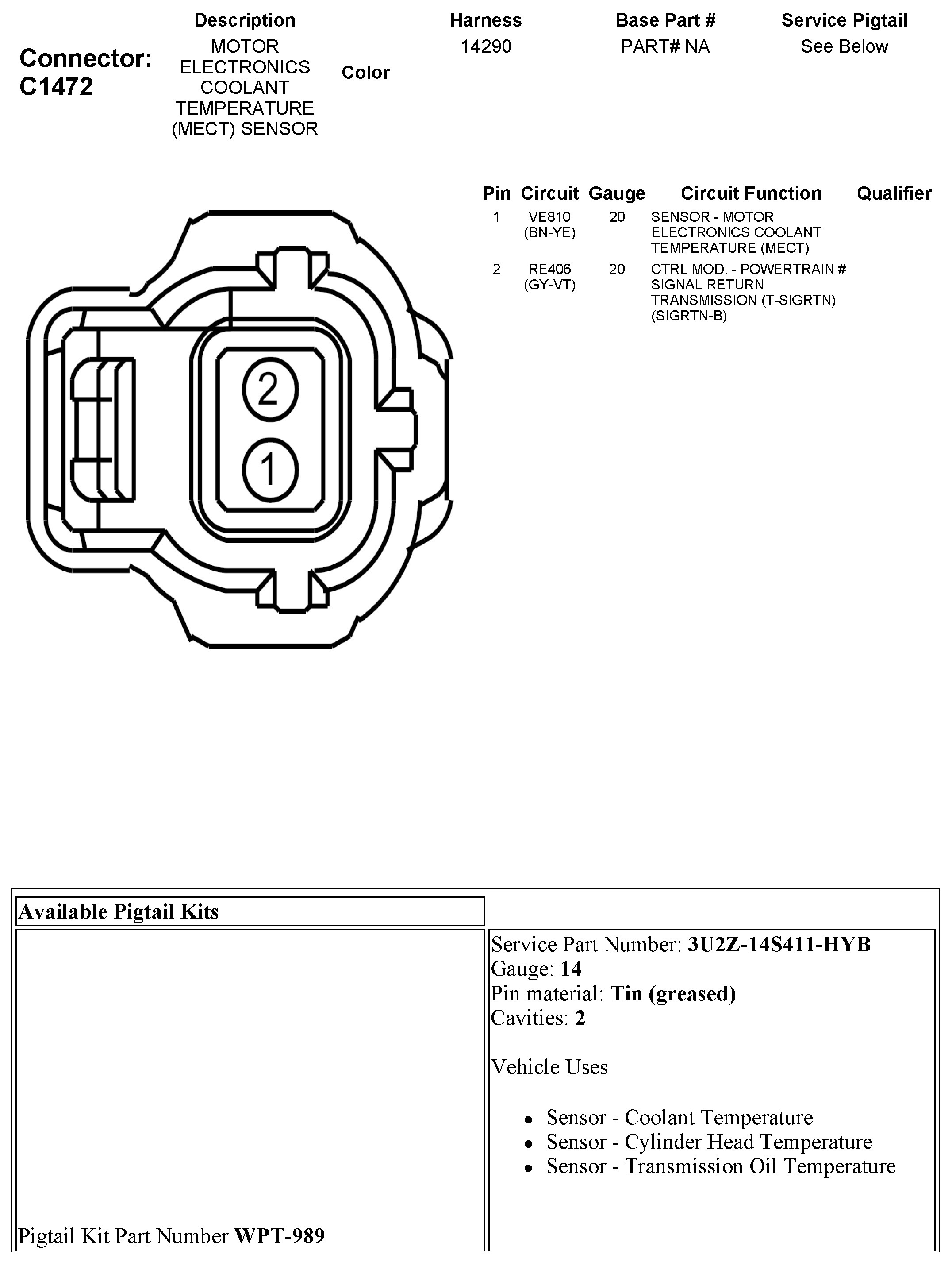 Coolant Temperature Sensor/Switch (For Computer): Diagrams
