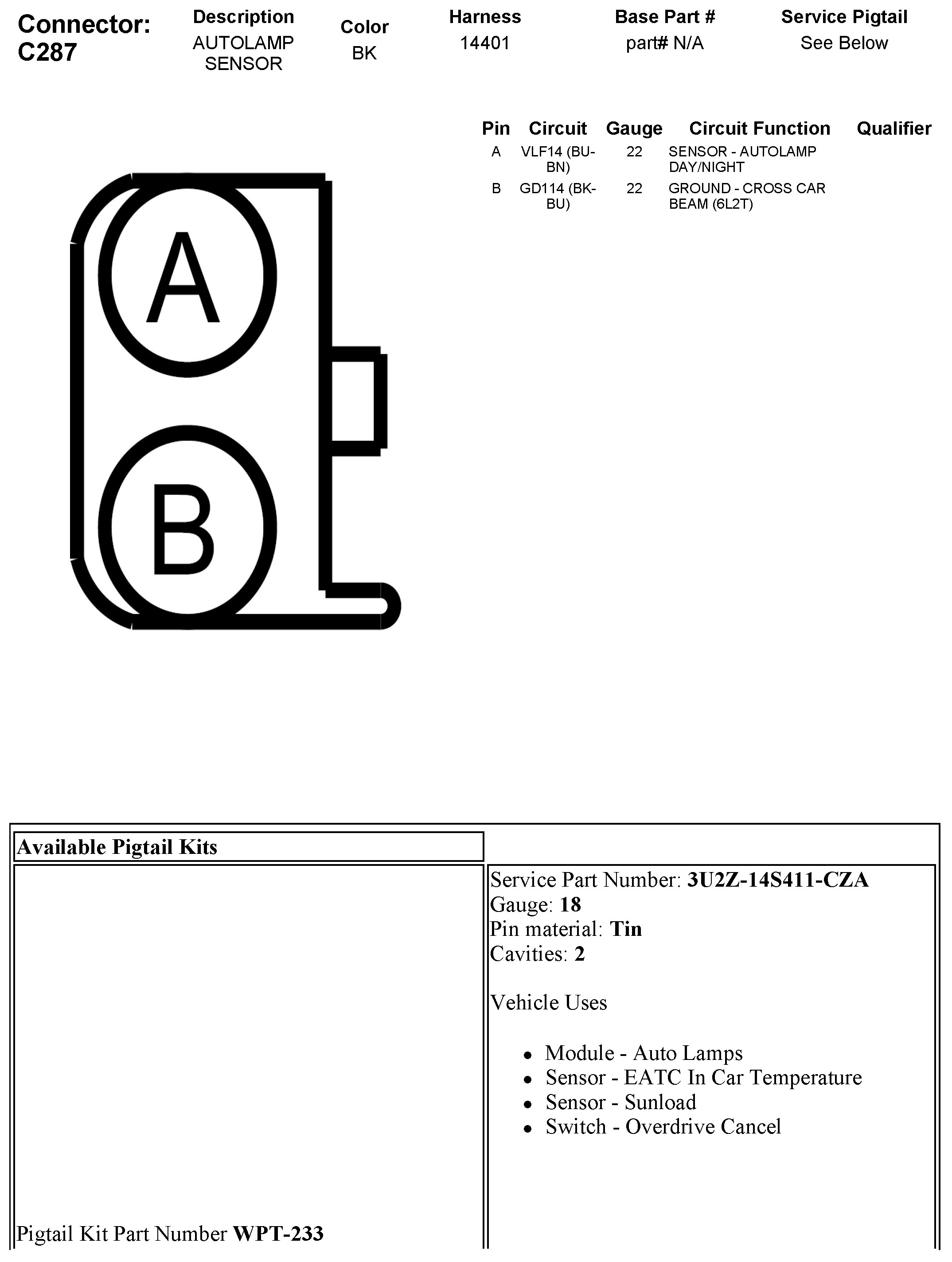 C287 Autolamp Sensor