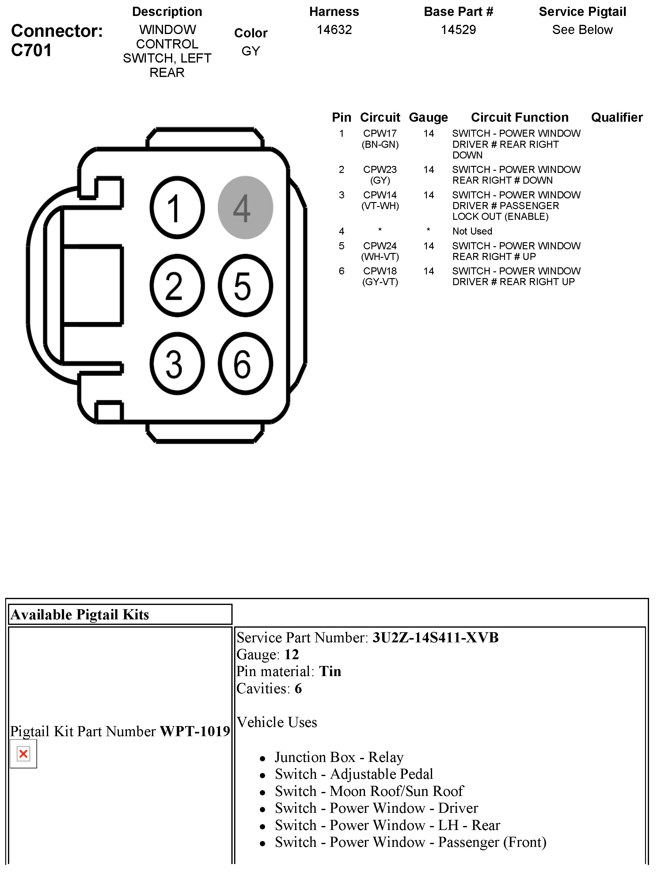 C701 Window Control Switch, Left Rear