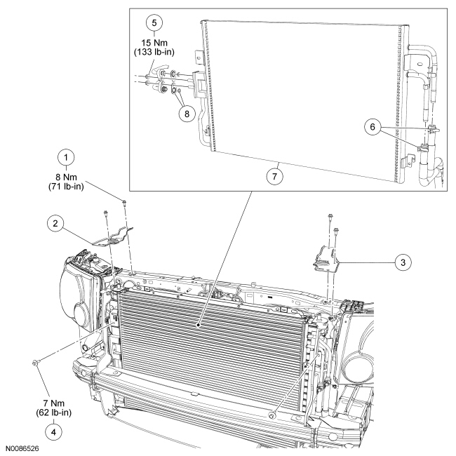 NOTE: If a condenser core leak is suspected, the condenser core must be leak tested before it is removed from the vehicle.