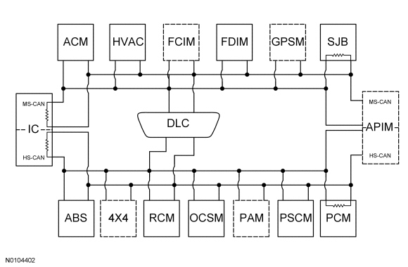 The Instrument Cluster (IC) is the gateway module, translating messages on the HS-CAN (High Speed Controller Area Network) to MS-CAN (Medium Speed Controller Area Network) and vice versa. This allows a message to be distributed throughout both networks. The IC (Instrument Cluster) is the only module on this vehicle that has this ability.