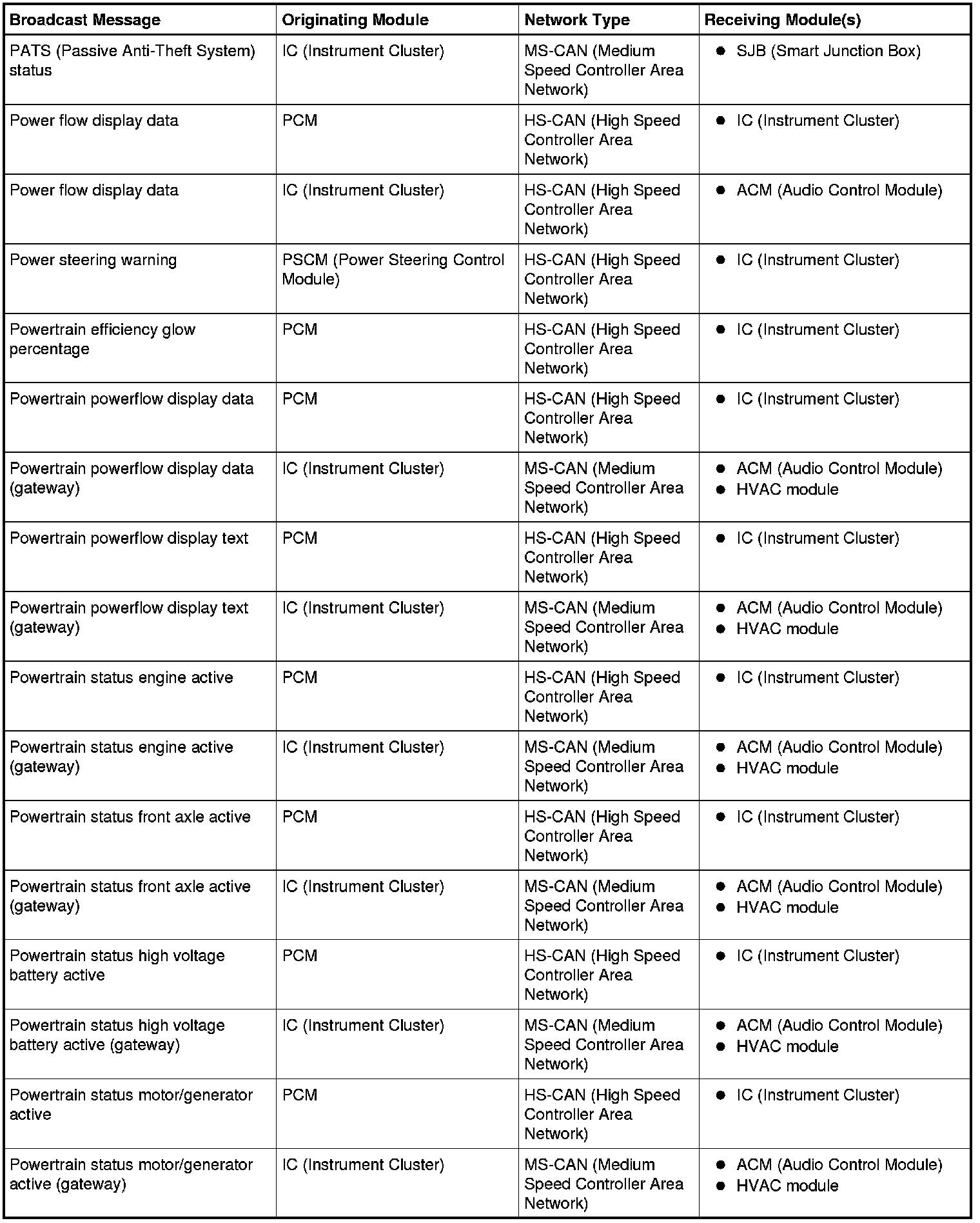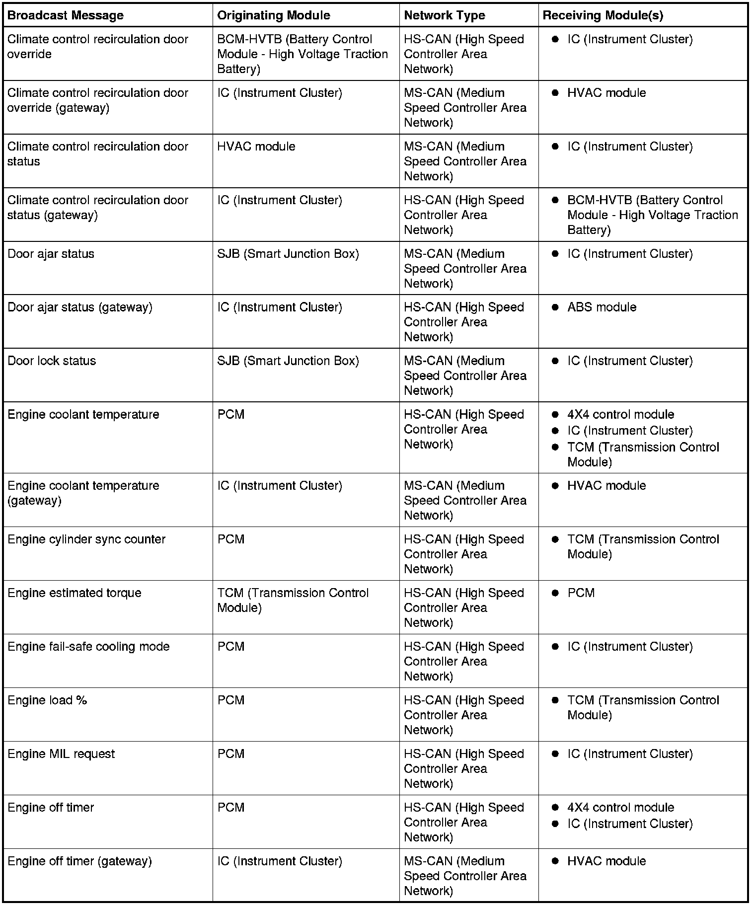 CAN (Controller Area Network) Module Communication Message Chart - Hybrid