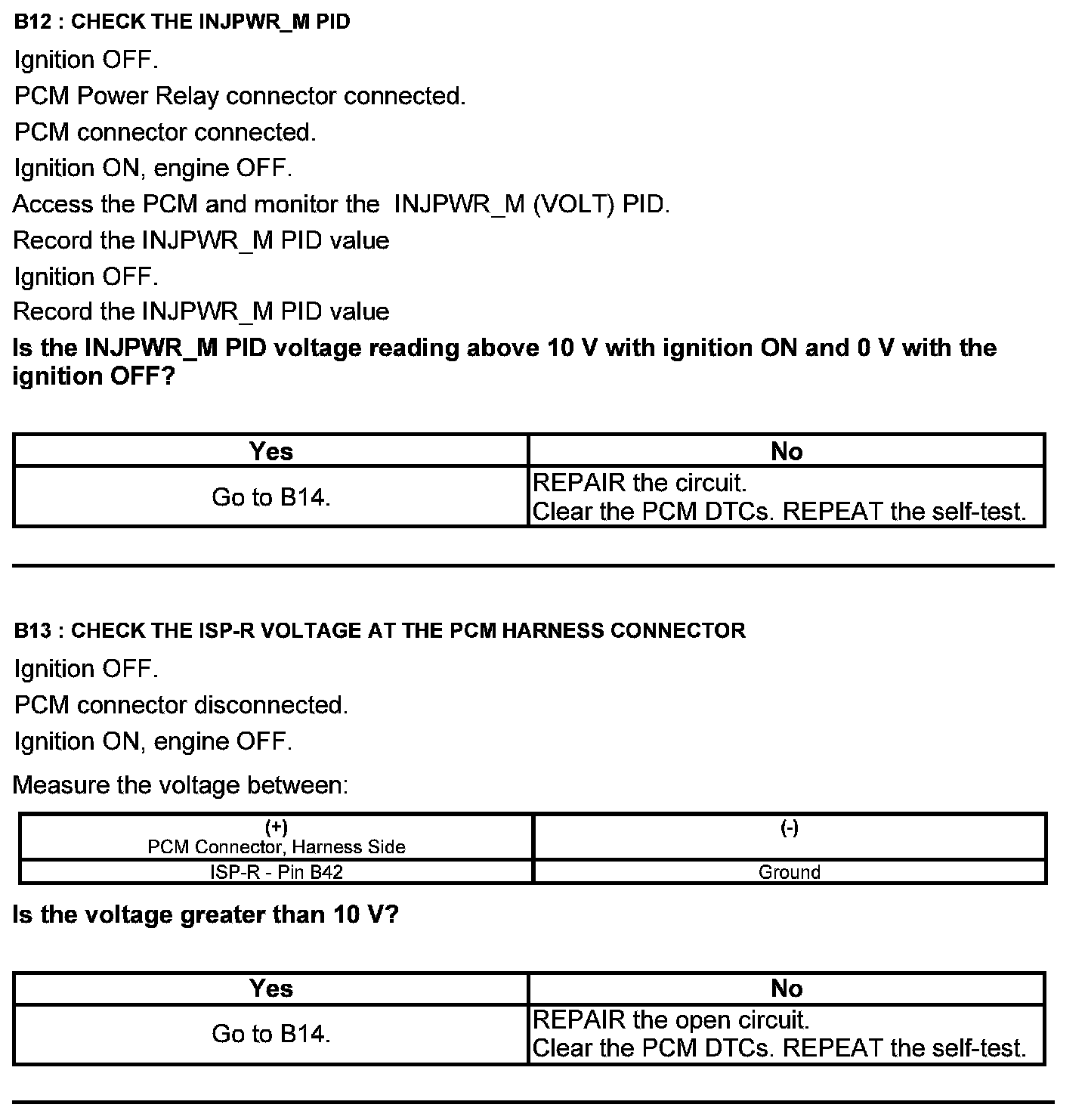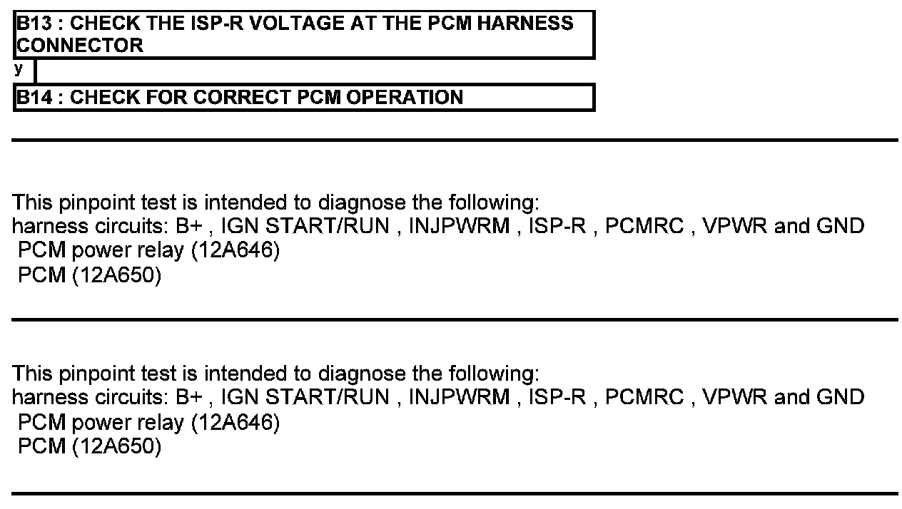 Home >> Ford >> 2012 >> Escape 2WD L4-2.5L >> Repair and Diagnosis >> Powertrain Management >> Computers and Control Systems >> Testing and Inspection >> Pinpoint Tests >> Test B: Powertrain Control Module (PCM) Power Relay >> Manual Transmission