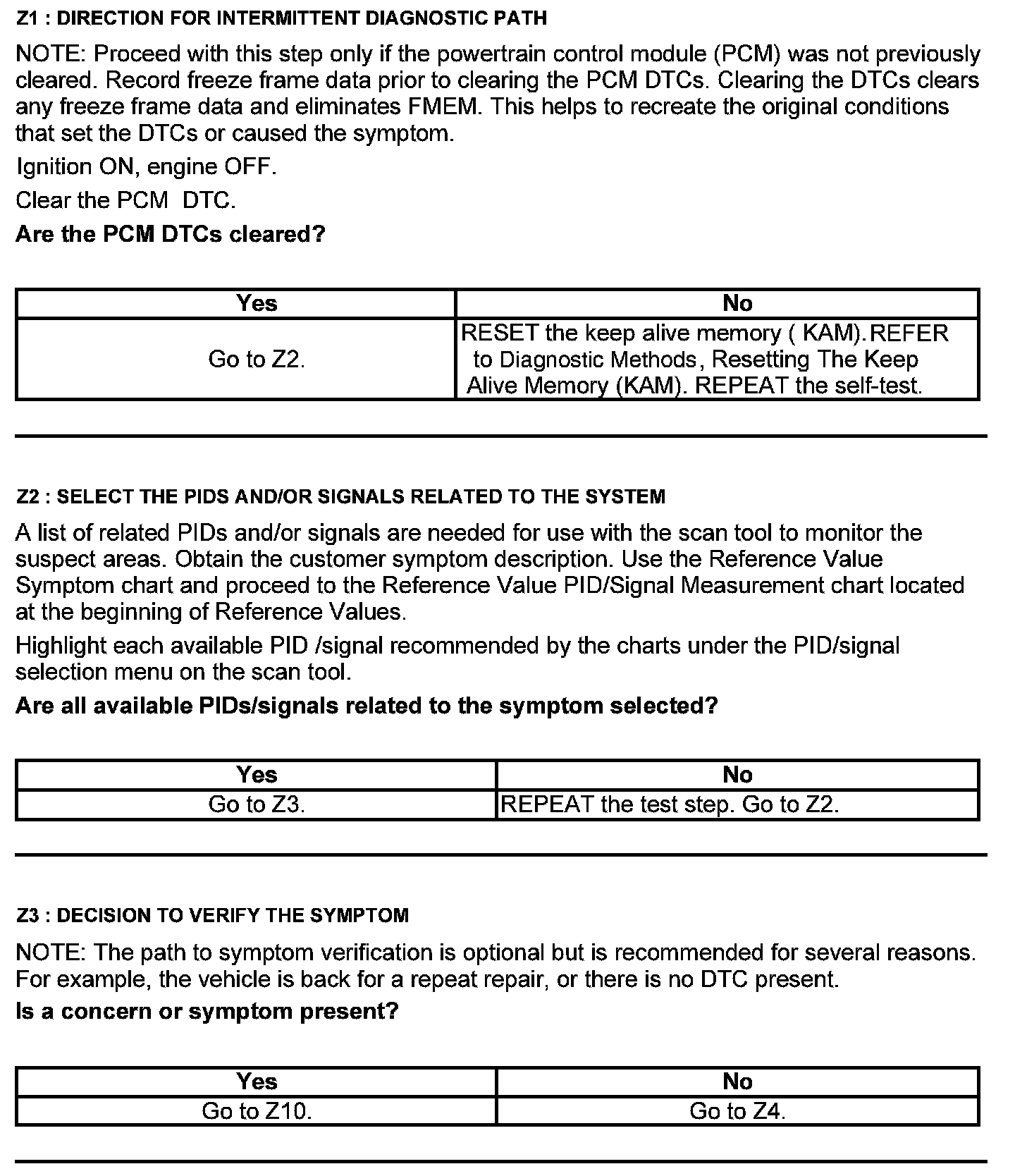 Test Z: Intermittent