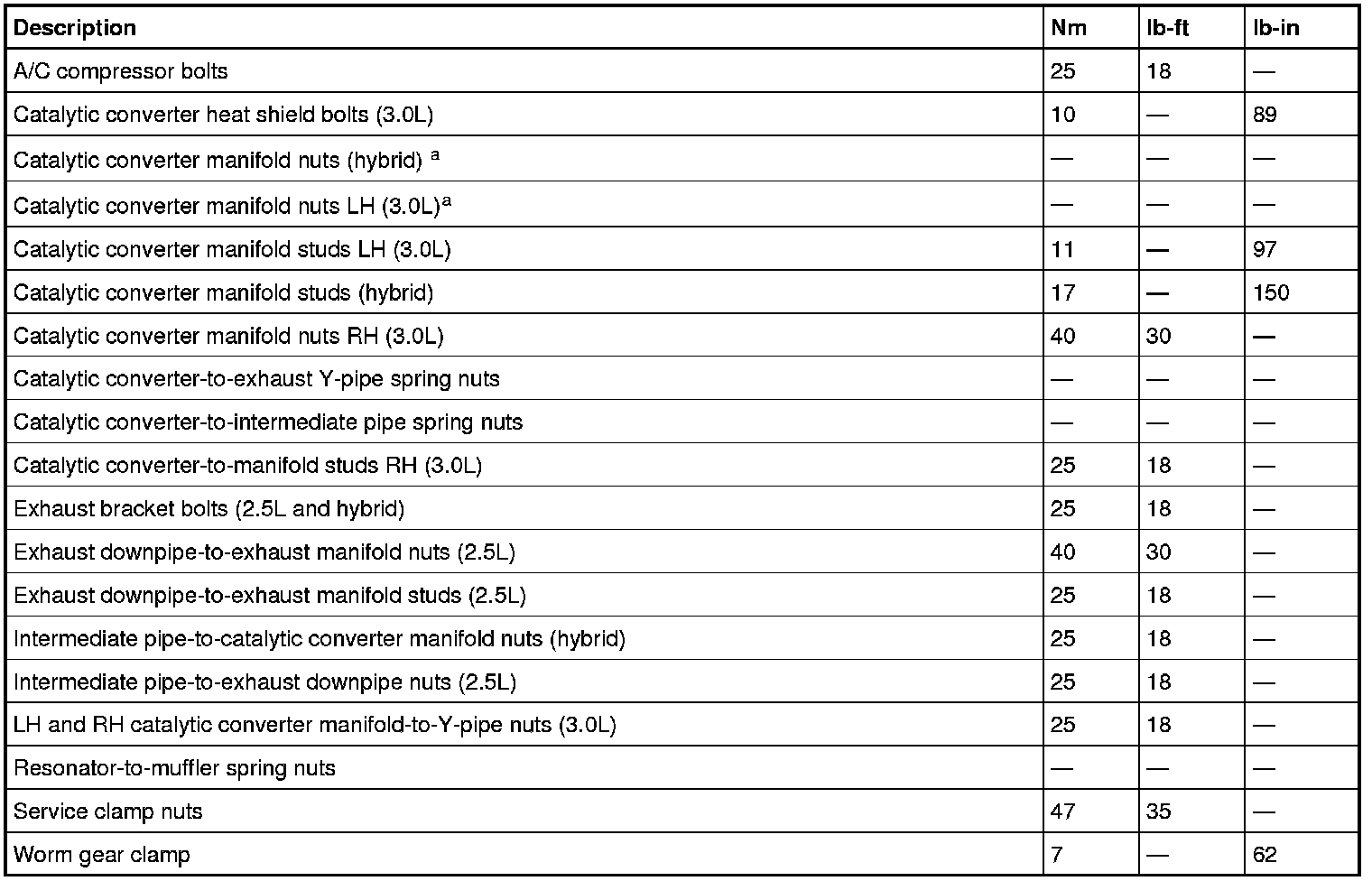 Torque Specifications