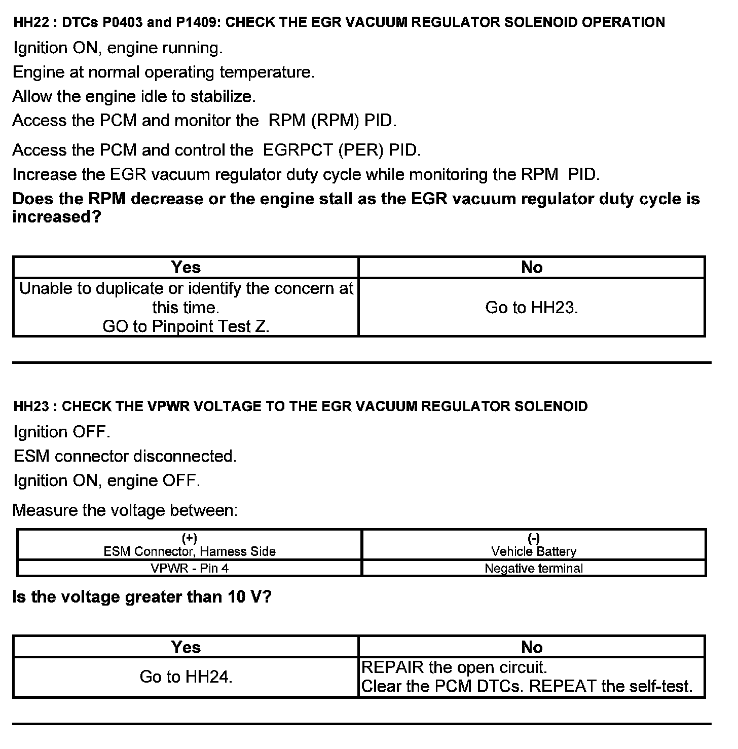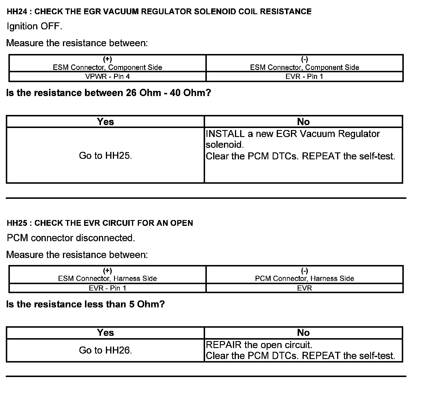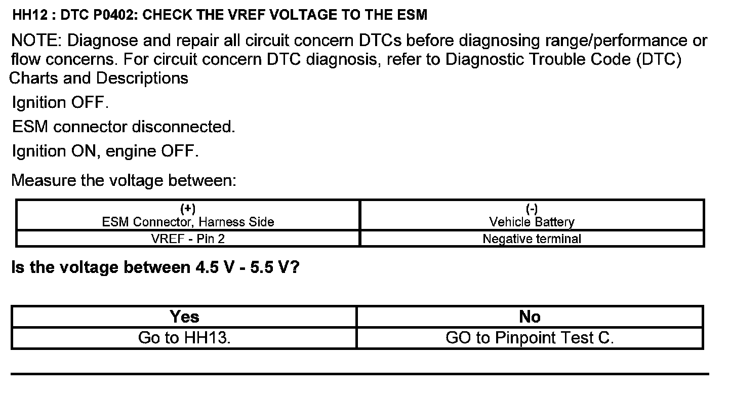 Home >> Ford >> 2012 >> Escape 2WD V6-3.0L >> Repair and Diagnosis >> Powertrain Management >> Computers and Control Systems >> Testing and Inspection >> Pinpoint Tests >> Test HH: Exhaust Gas Recirculation System Module (ESM)