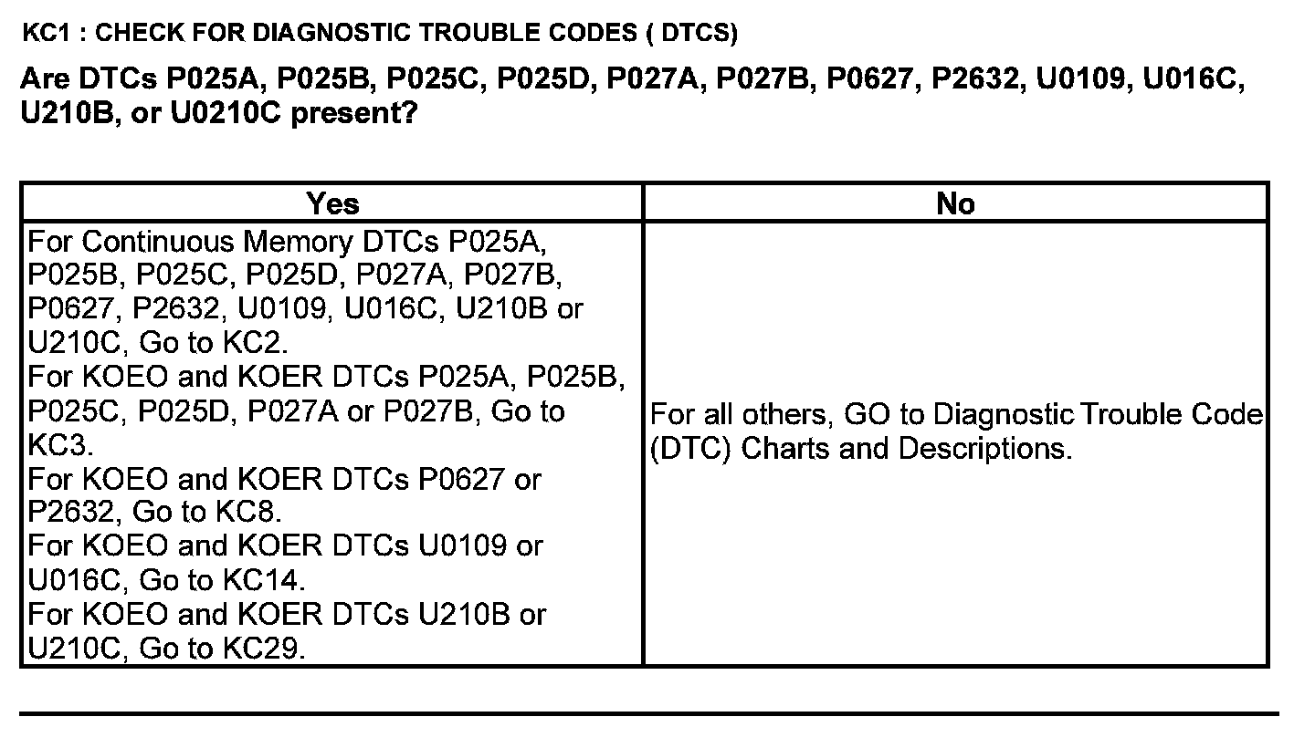 Home >> Ford >> 2012 >> Escape 2WD V6-3.0L >> Repair and Diagnosis >> Powertrain Management >> Computers and Control Systems >> Testing and Inspection >> Pinpoint Tests >> Test KC: Fuel Pump Control Module
