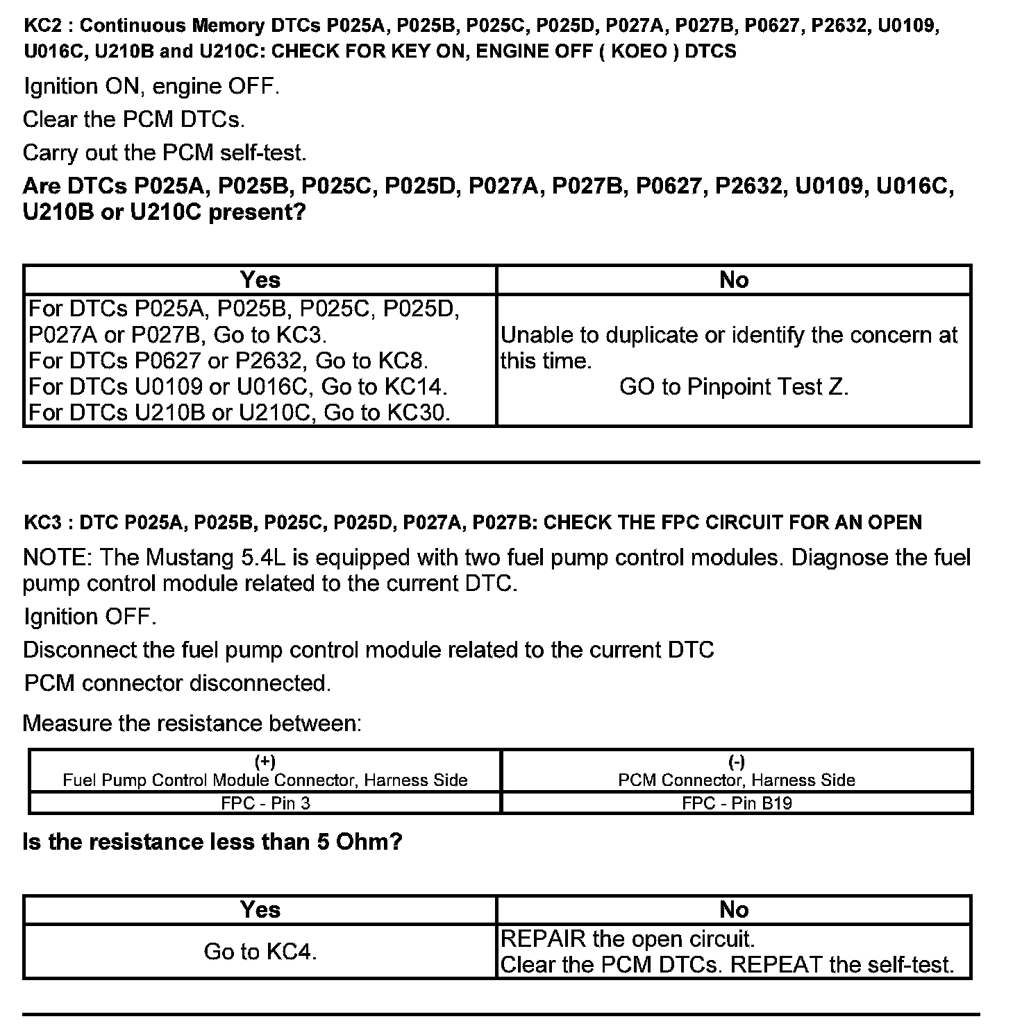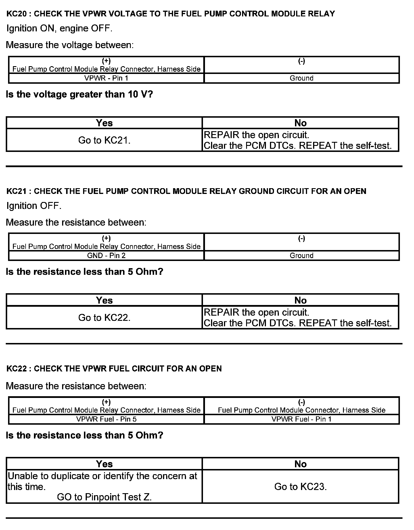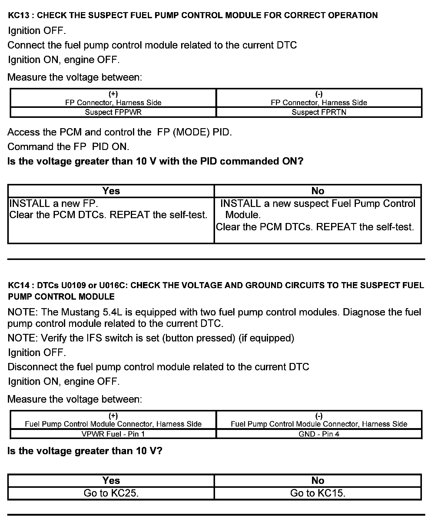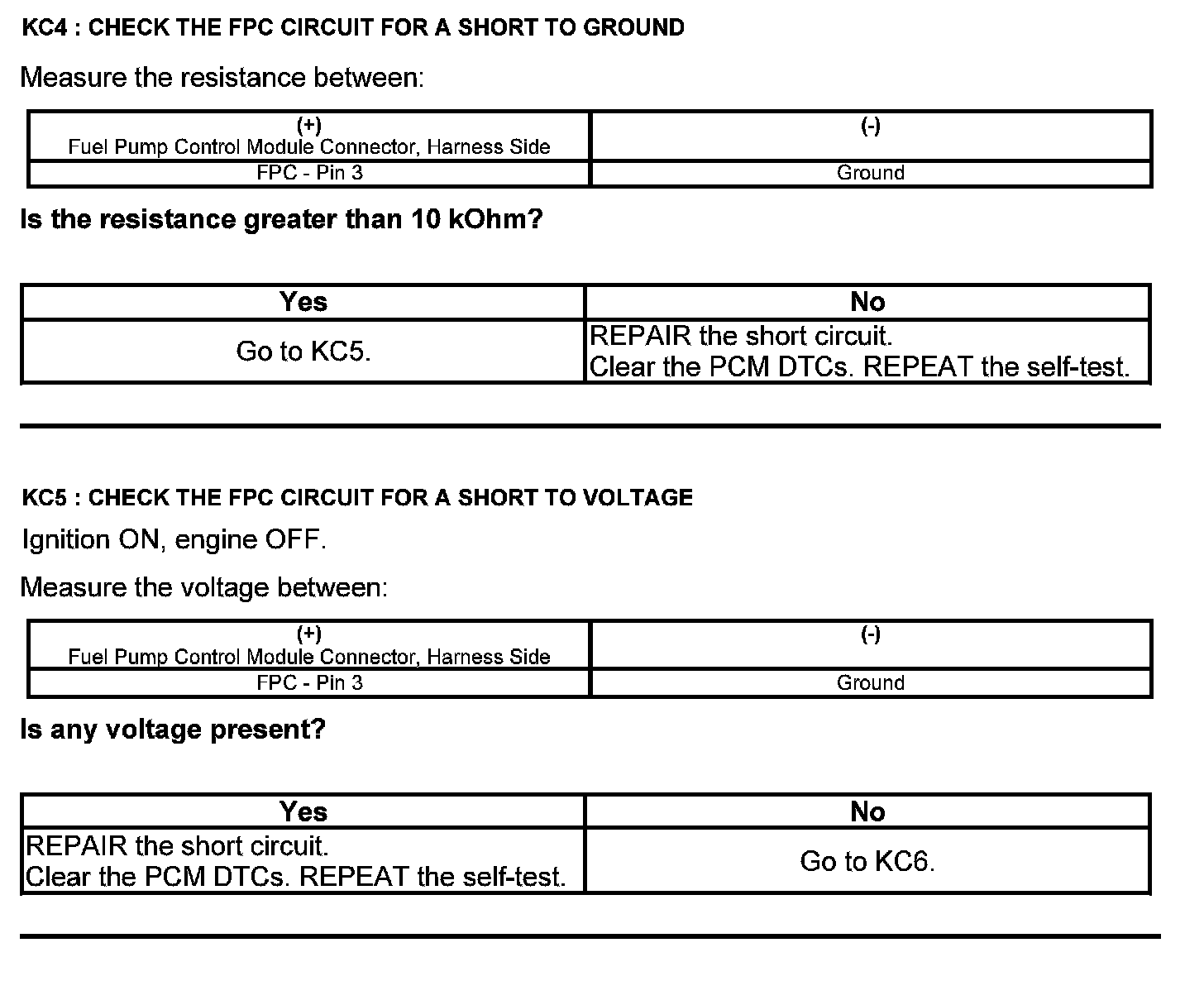 Test KC: Fuel Pump Control Module
