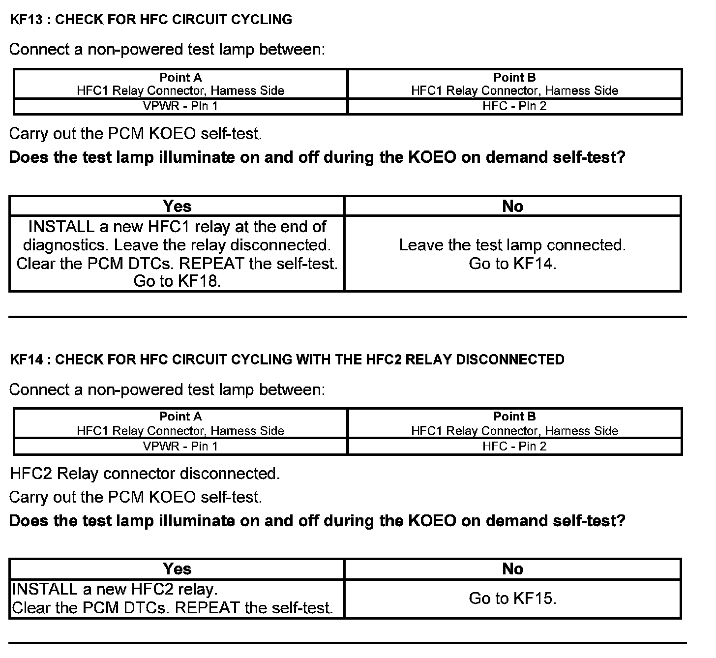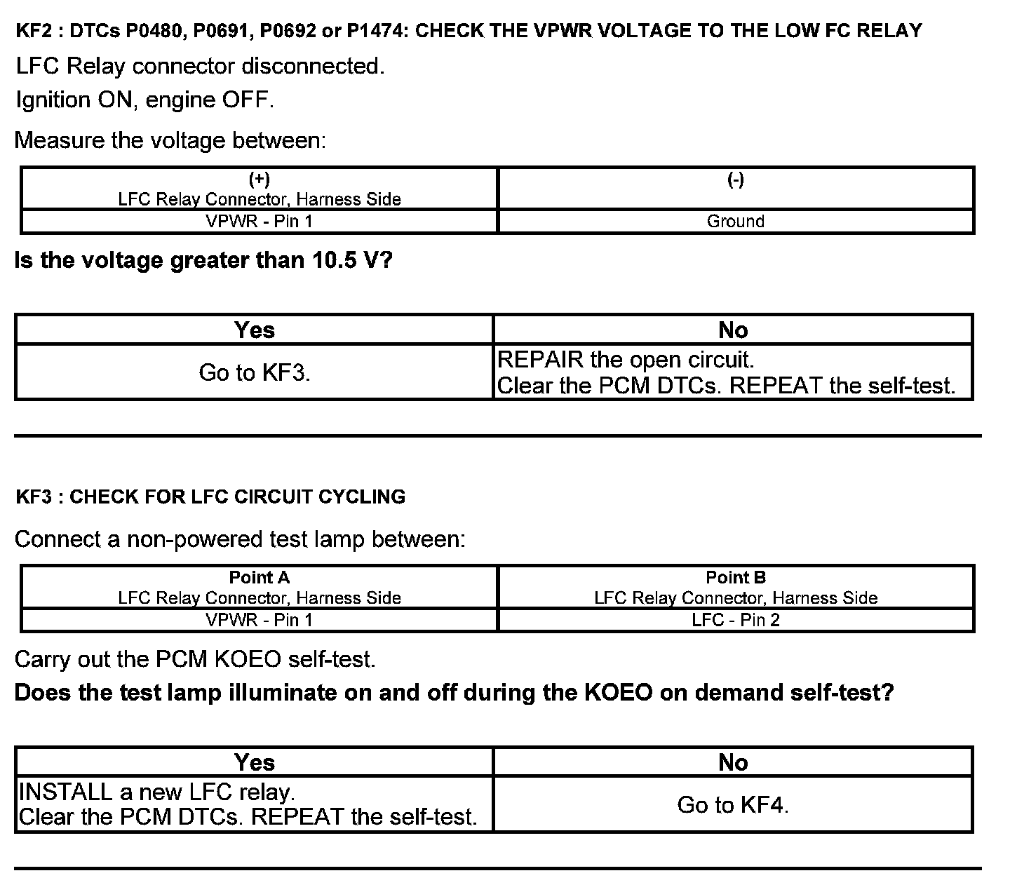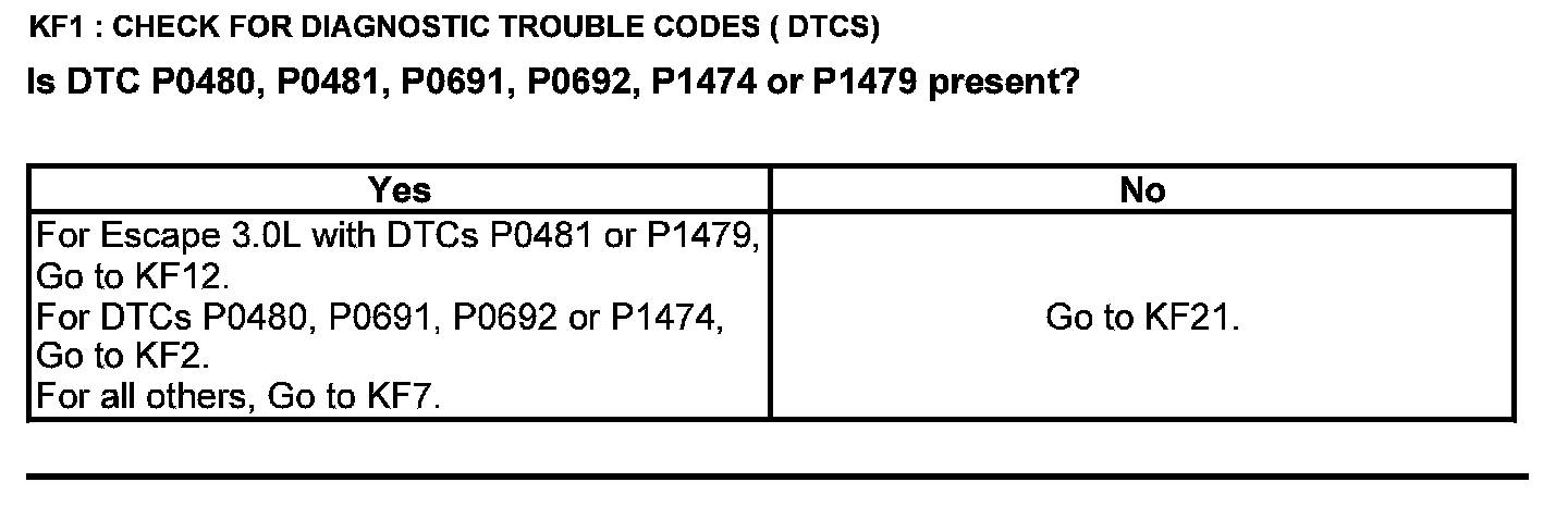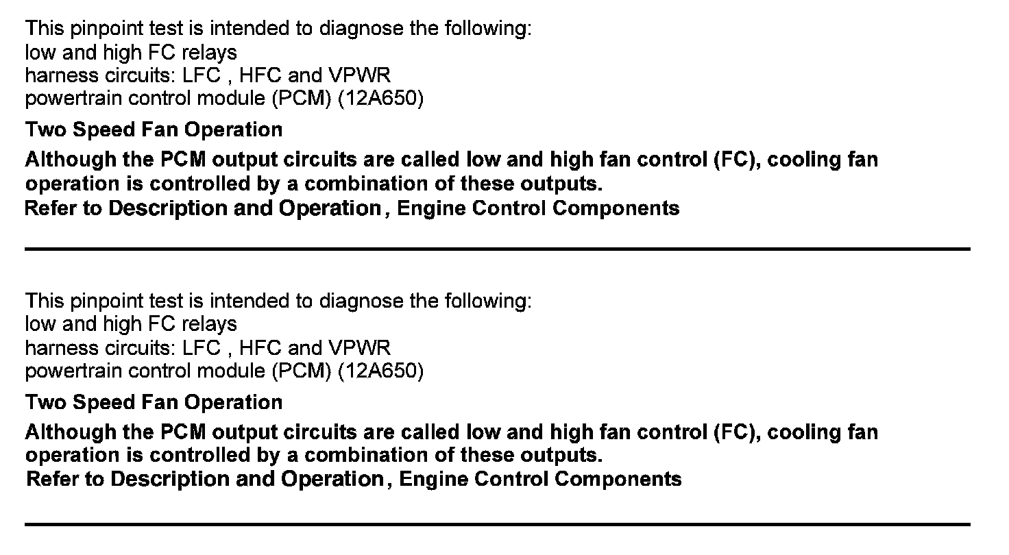 Home >> Ford >> 2012 >> Escape 2WD V6-3.0L >> Repair and Diagnosis >> Powertrain Management >> Computers and Control Systems >> Testing and Inspection >> Pinpoint Tests >> Test KF: Fan Control Relays