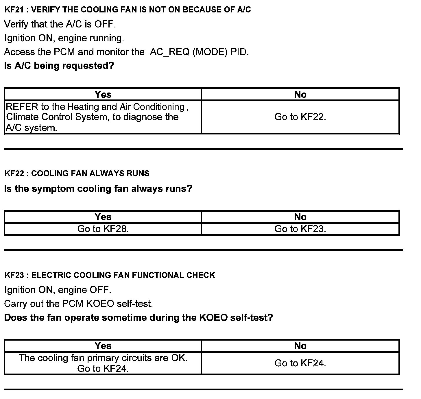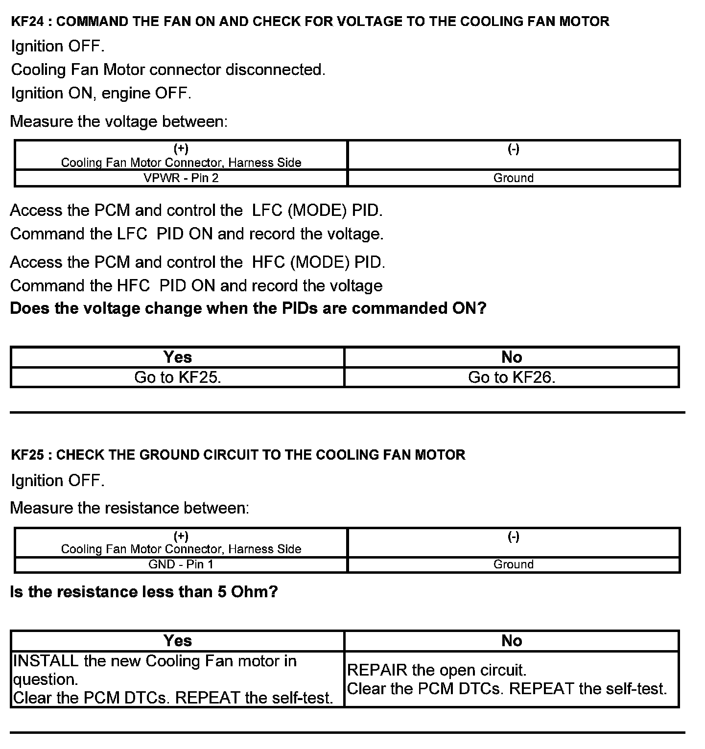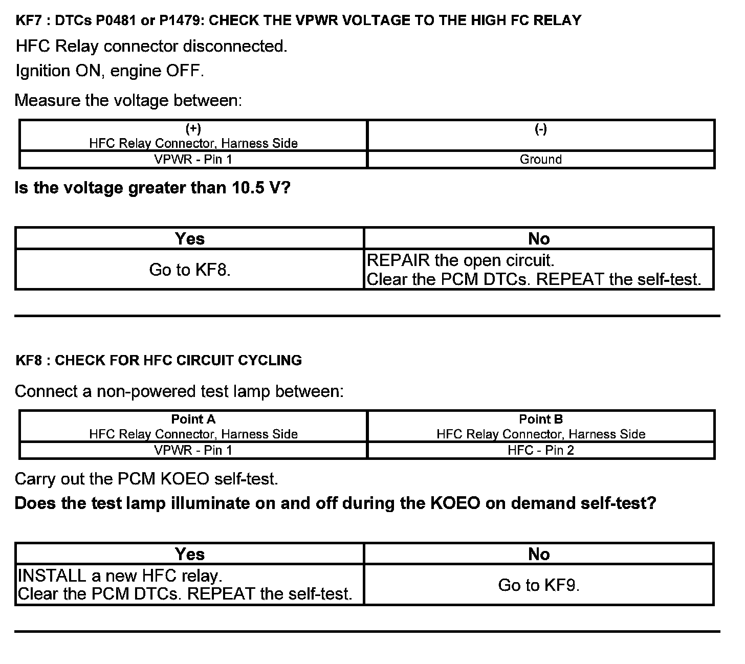 Home >> Ford >> 2012 >> Escape 2WD V6-3.0L >> Repair and Diagnosis >> Powertrain Management >> Computers and Control Systems >> Testing and Inspection >> Pinpoint Tests >> Test KF: Fan Control Relays
