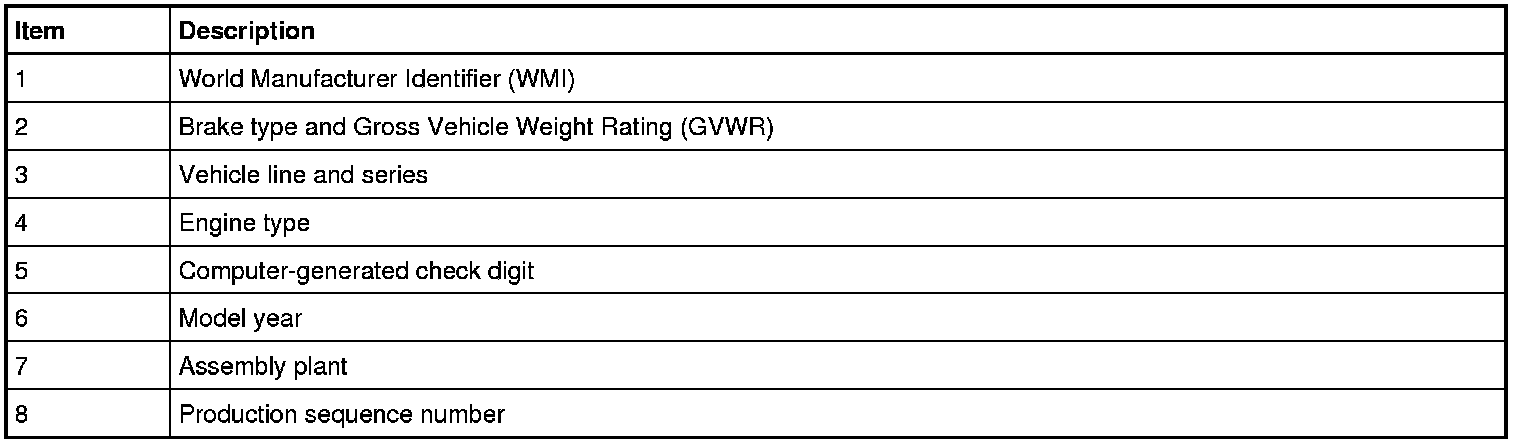 The fourth VIN (Vehicle Identification Number) position is the vehicle brake type and Gross Vehicle Weight Rating (GVWR) code. All vehicles use hydraulic brakes.