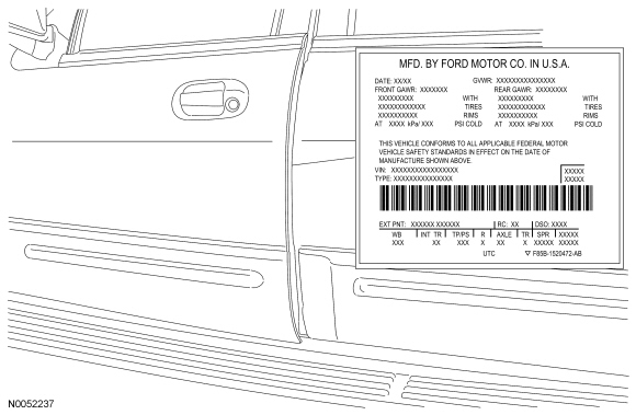 The Vehicle Certification (VC) label contains the manufacturer name, the month and year of manufacture, the certification statement and the Vehicle Identification Number (VIN). It also includes Gross Vehicle Weight Rating (GVWR).