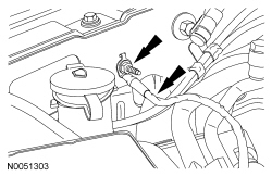 - Unclip the RH hose from the retainers on the side of the degas bottle/air cleaner module.