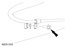 14. Remove the parking brake cable-to-frame bolt.